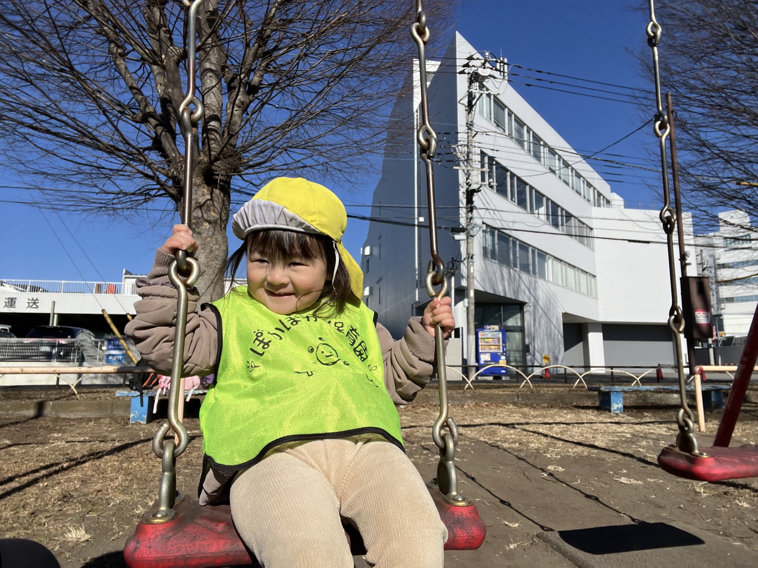 「先生、押してー!」「わー、たかい!」と、笑顔でブランコに揺られたり、