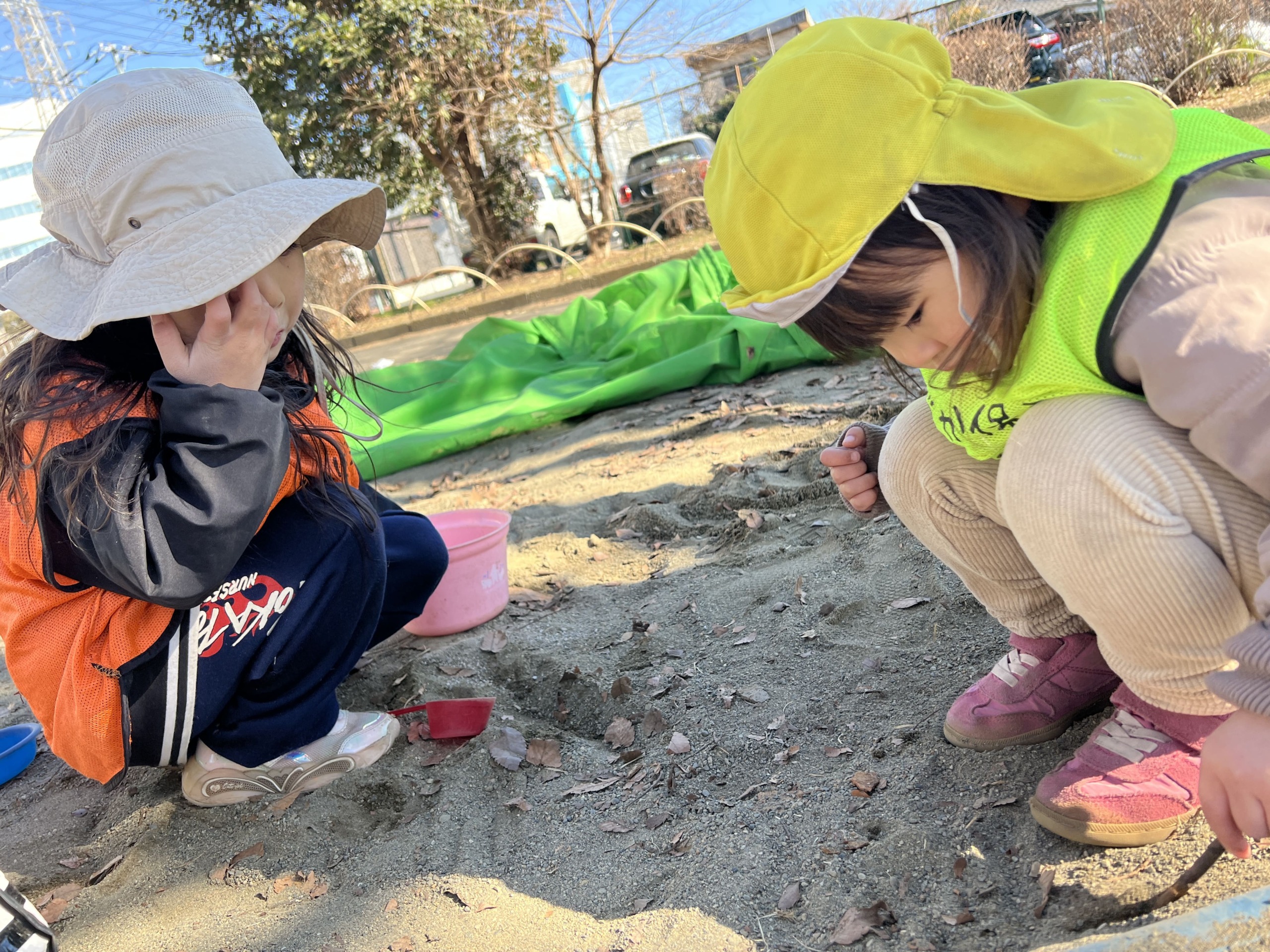 一緒に砂でお料理を作ったり、おままごとをしたりして、