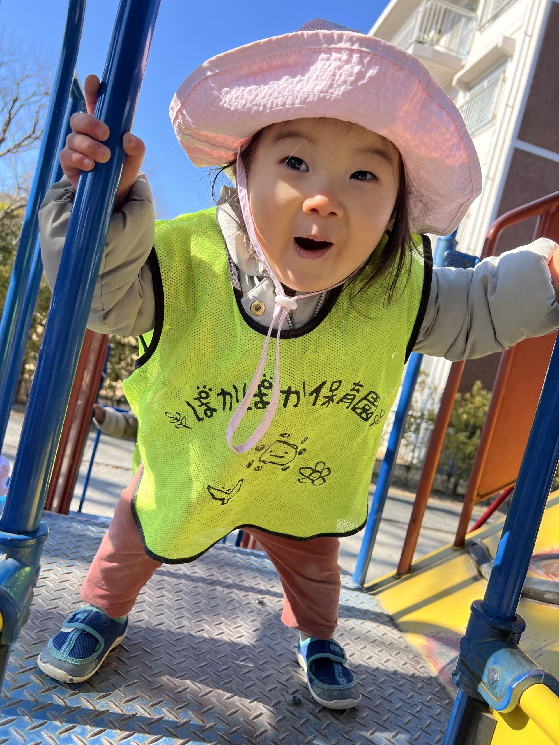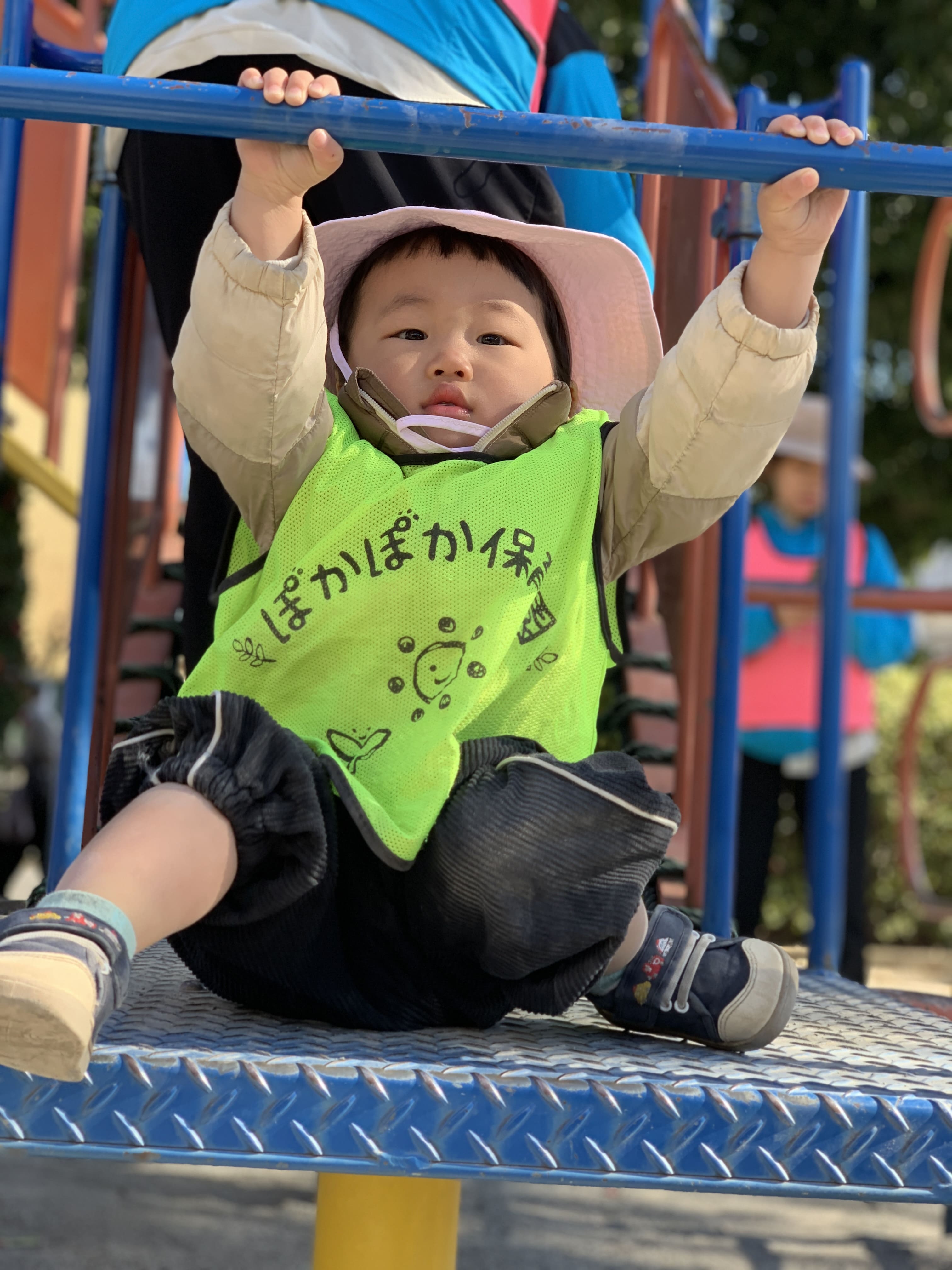 「すごいね!もうすぐてっぺんだね!」と先生が声をかけると、