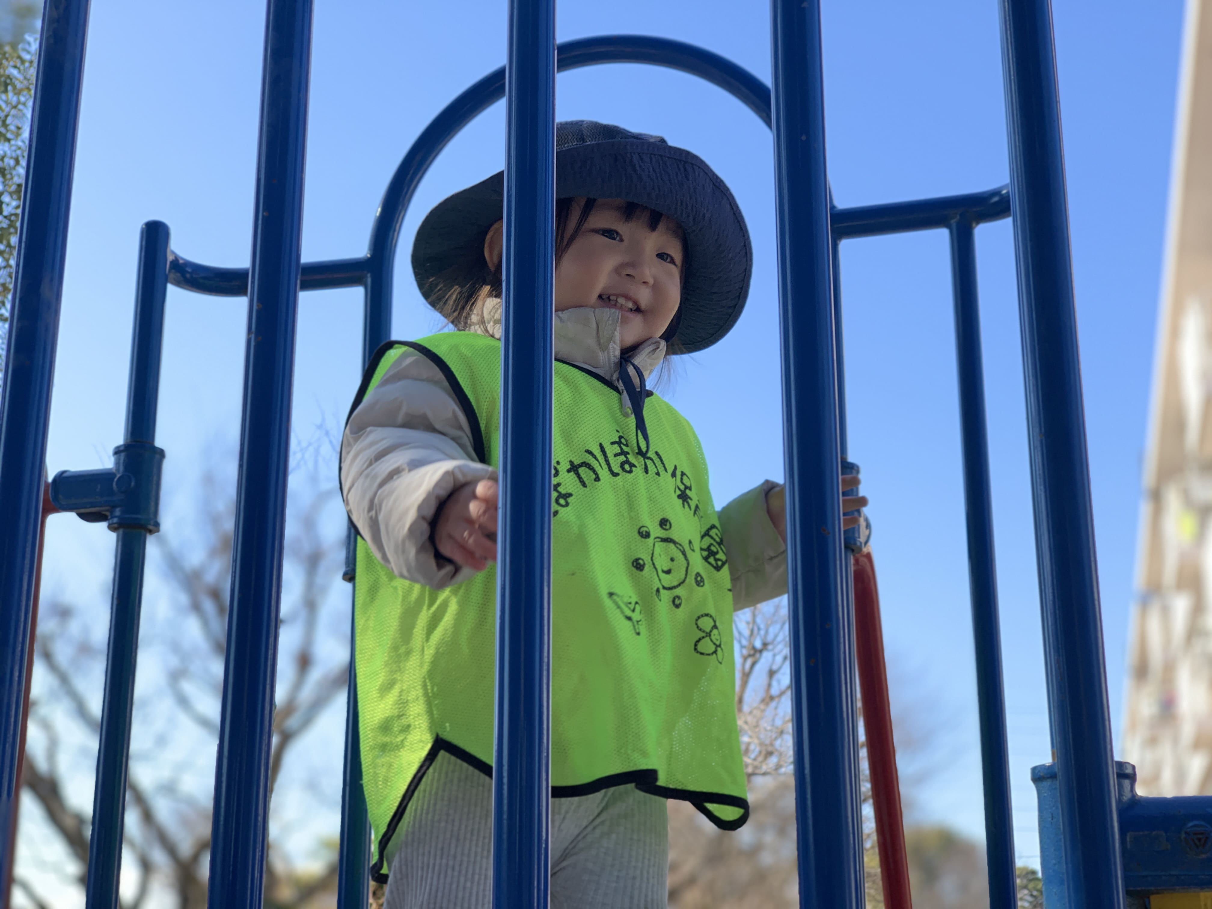 「見て、先生、ここまで登れたよ!」と、元気いっぱいに体を動かし、