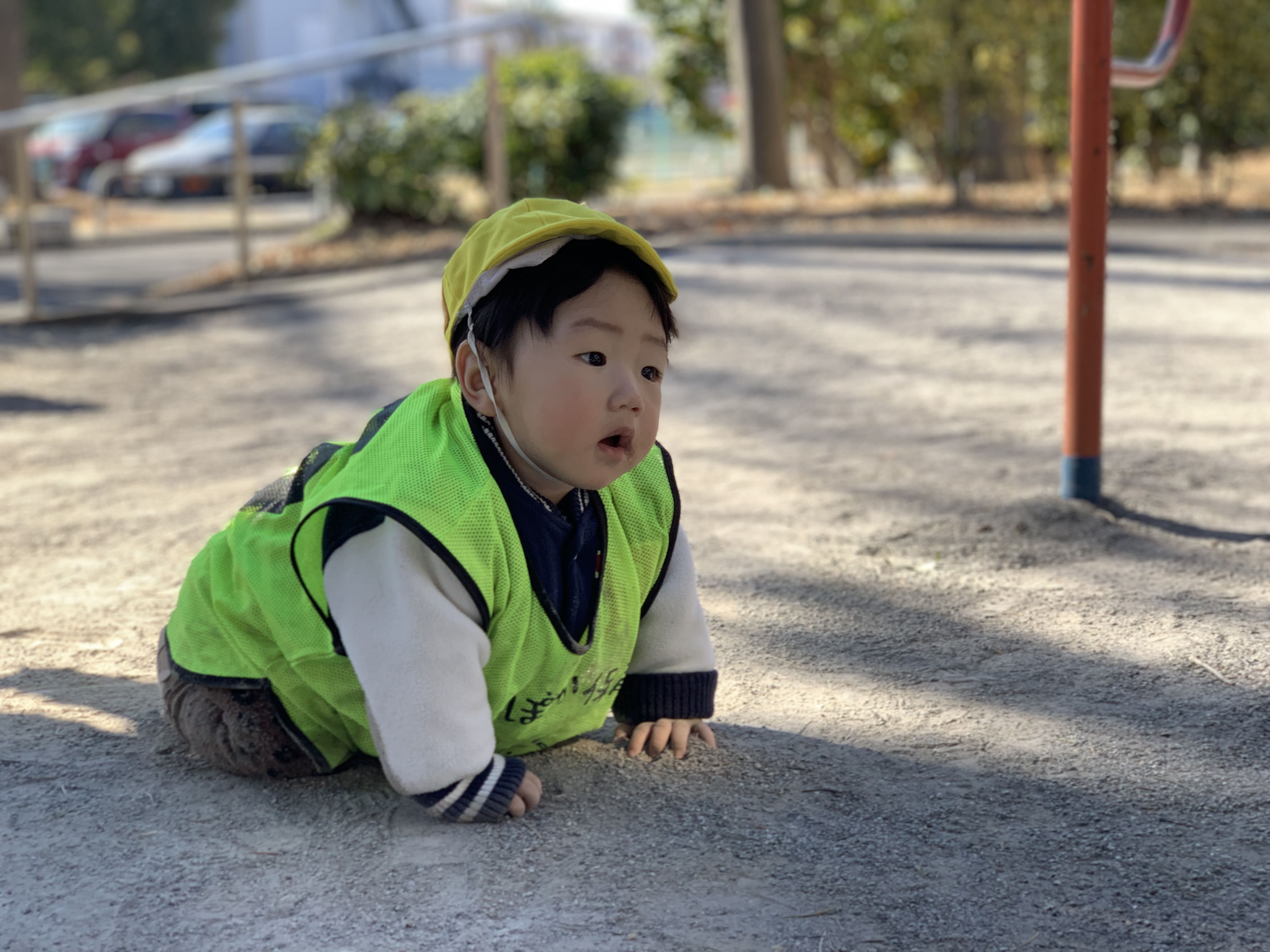 今日は、0歳から1歳までの子どもたちと一緒に、園の近くにある公園へお出かけしました!