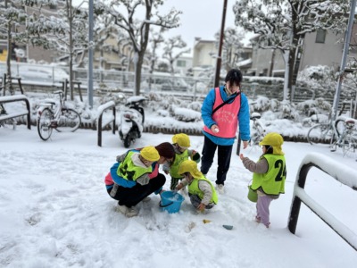 子どもたちの体調に配慮しながら、短時間の雪遊びとなりました。