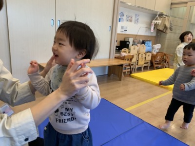 今日は、0歳、1歳、2歳の子どもたちが、それぞれに合わせた活動で、