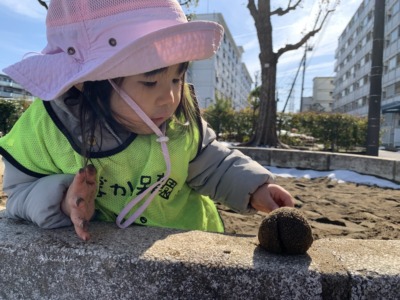 泥をコネコネして泥団子作りに挑戦したりと、五感を存分に使って遊びました。