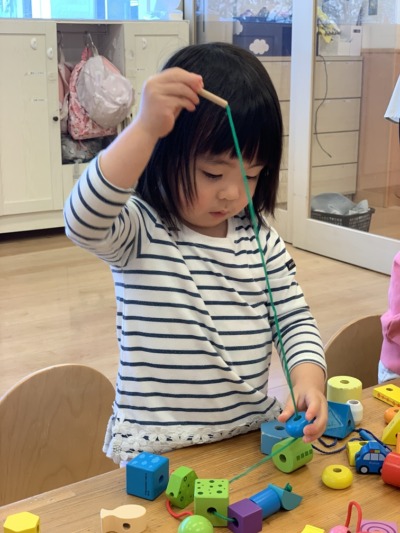 ダンスで体を動かした後は、お部屋に戻って指先を使った集中遊びの時間です。