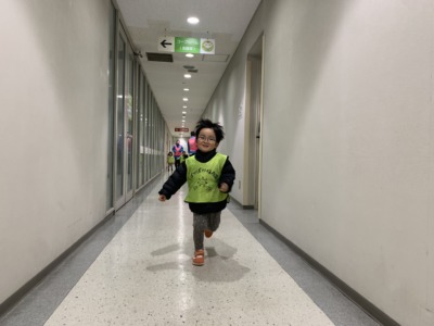 今日は急遽、テナントの広い空間を利用して、室内での大冒険に出発しましたよ。