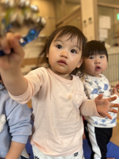 自分の色が出てきたらエッグシェーカーを高ーく上げて鳴らします。