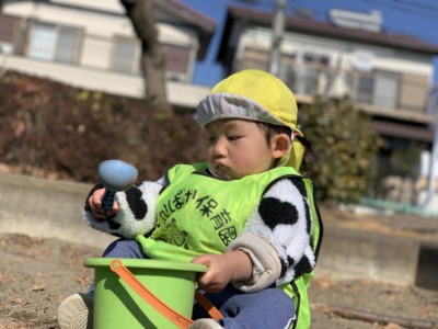 スコップでちょんちょんと叩いてみたりと、じっくりと遊びを楽しんでいました。
