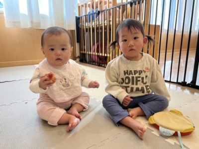今日は、0歳、1歳、2歳の子どもたちが合同で、
