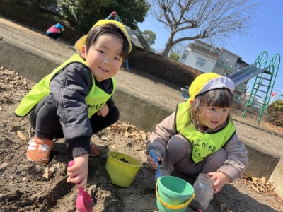 砂場では、様々なおままごとが繰り広げられていました。