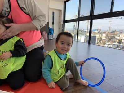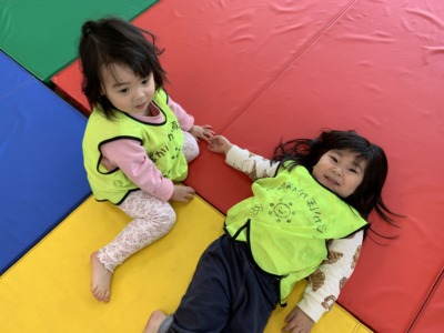 マットの上では、先生と一緒に「ぴょんぴょん!」と飛び跳ねたり、