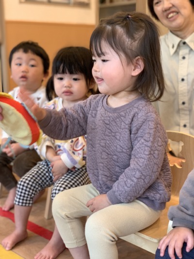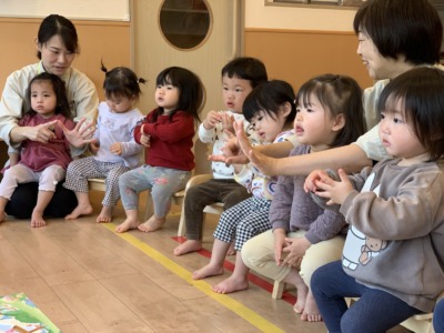 今日は、0歳、1歳、2歳の子どもたちが一緒に、