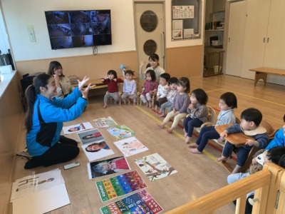 まずは、子どもたちの大好きエラ先生との英語遊びの時間です。