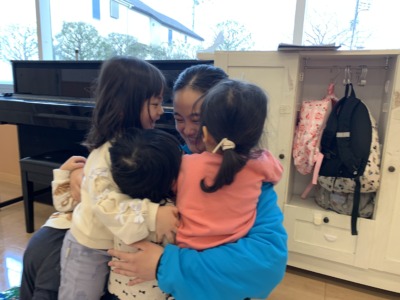 先生が優しく声をかけながら、一人ひとりをしっかりと抱きしめたり、