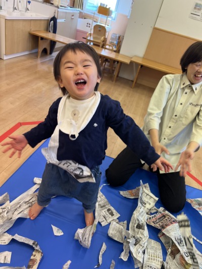 次に新聞紙が登場すると、子どもたちは大喜び!