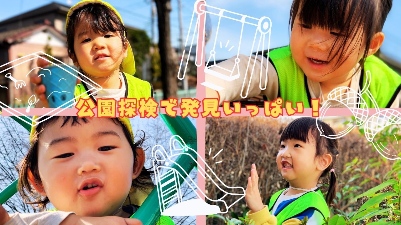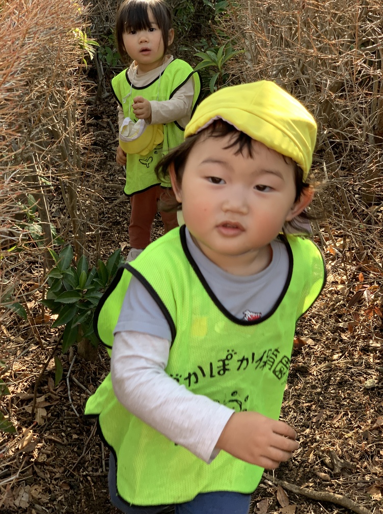 今日は近くの公園へお散歩に出かけました。まずは2歳児さんの様子からご紹介します。