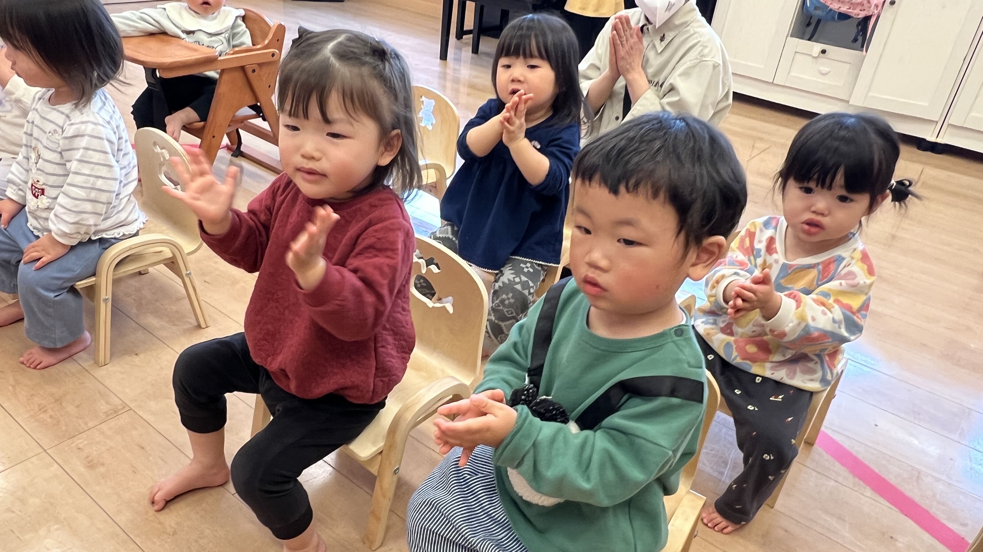 今日は、0歳児と1歳児と2歳児のお友だちみんなで、