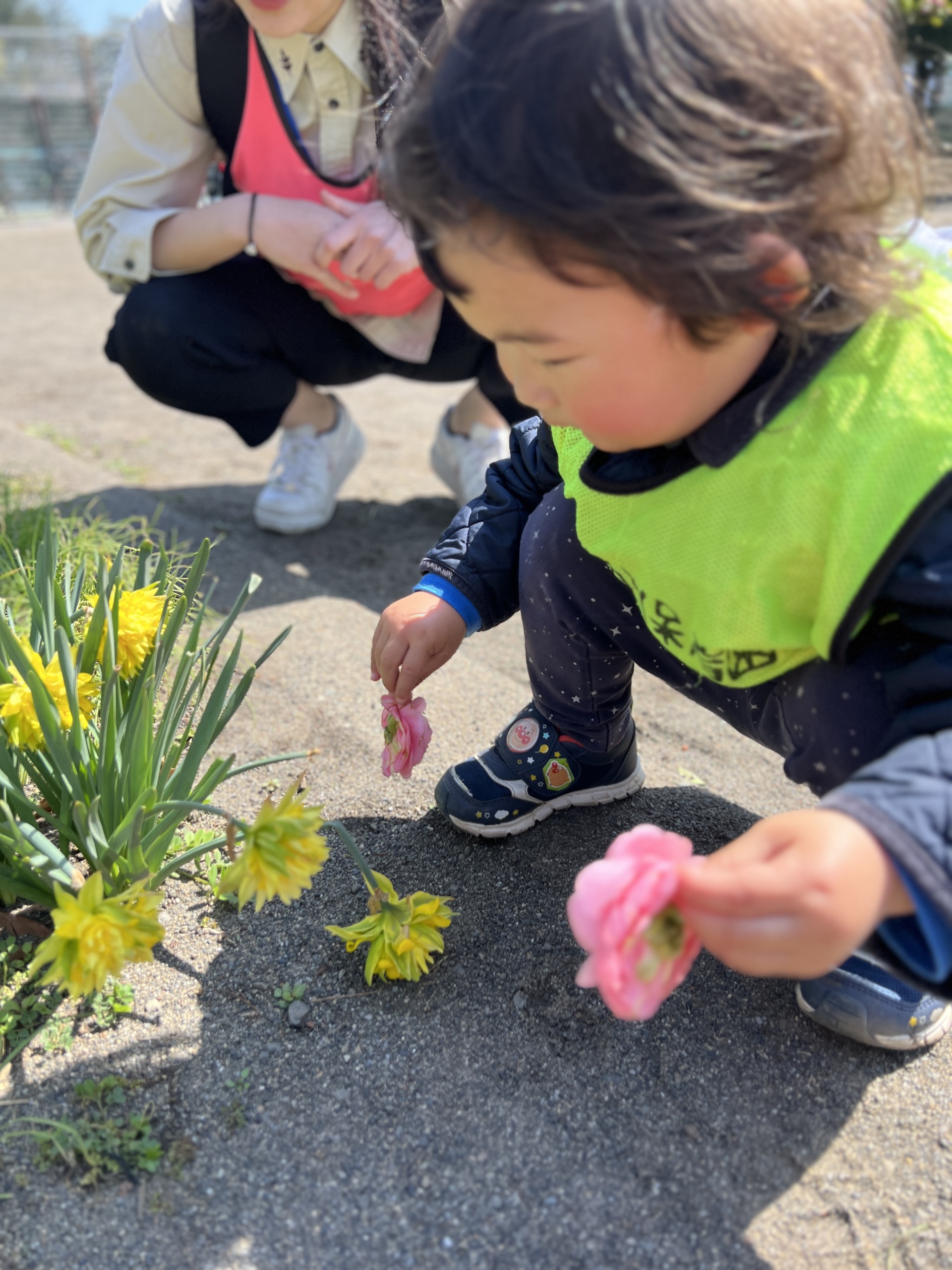 「みんな、公園行くよー!」と先生が声をかけると、