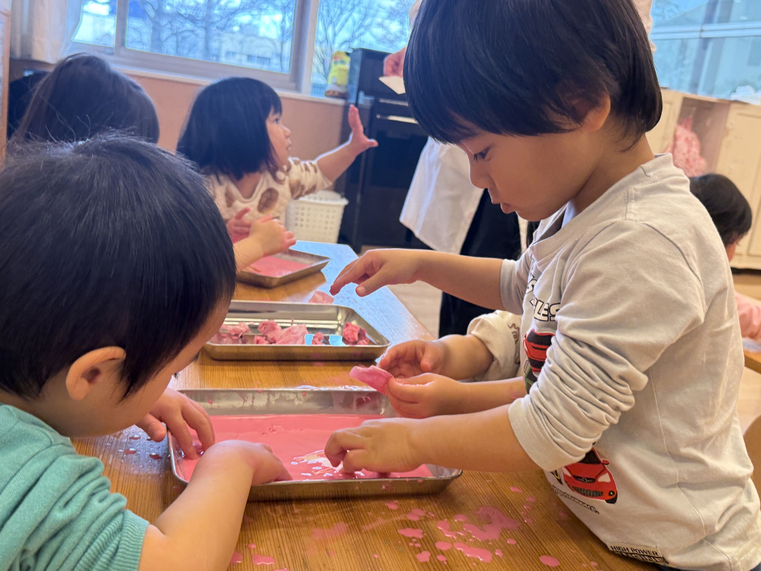 たっぷり春の自然を満喫して、保育園に戻ってからは、サイエンス活動に挑戦!