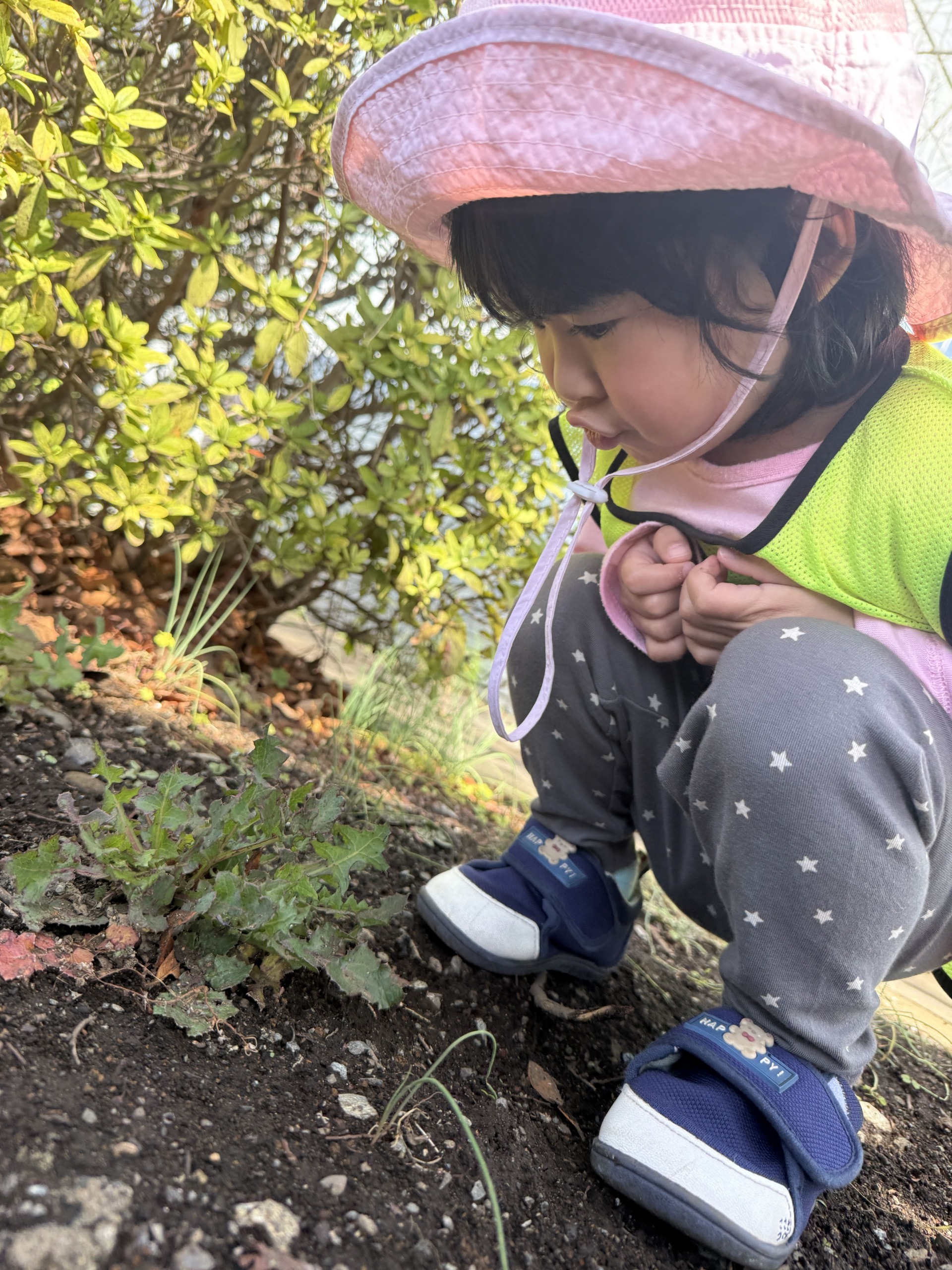 「せんせー、おはな、きれい!」と、子どもたちは、指をさして、