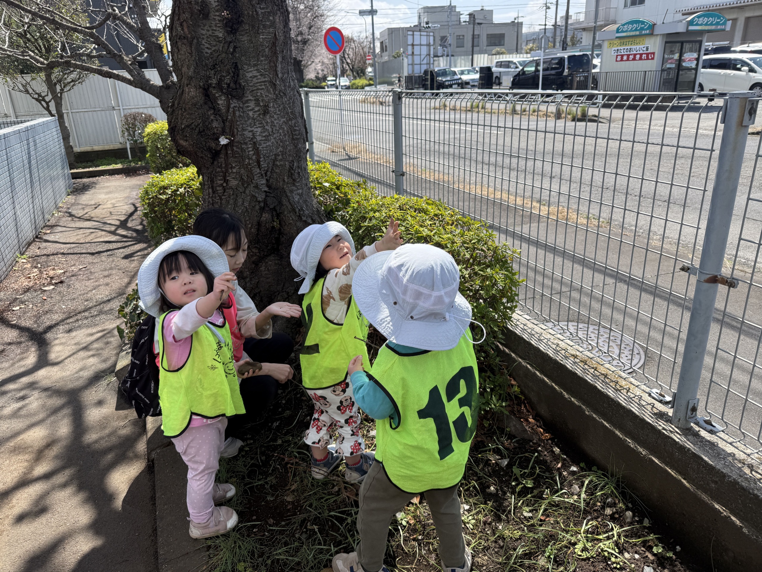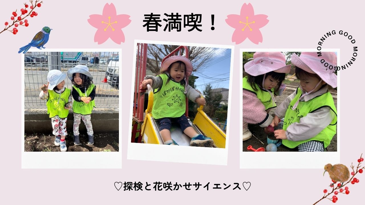 今日のぽかぽか保育園では、暖かい日差しの中で春の自然と触れ合い、
