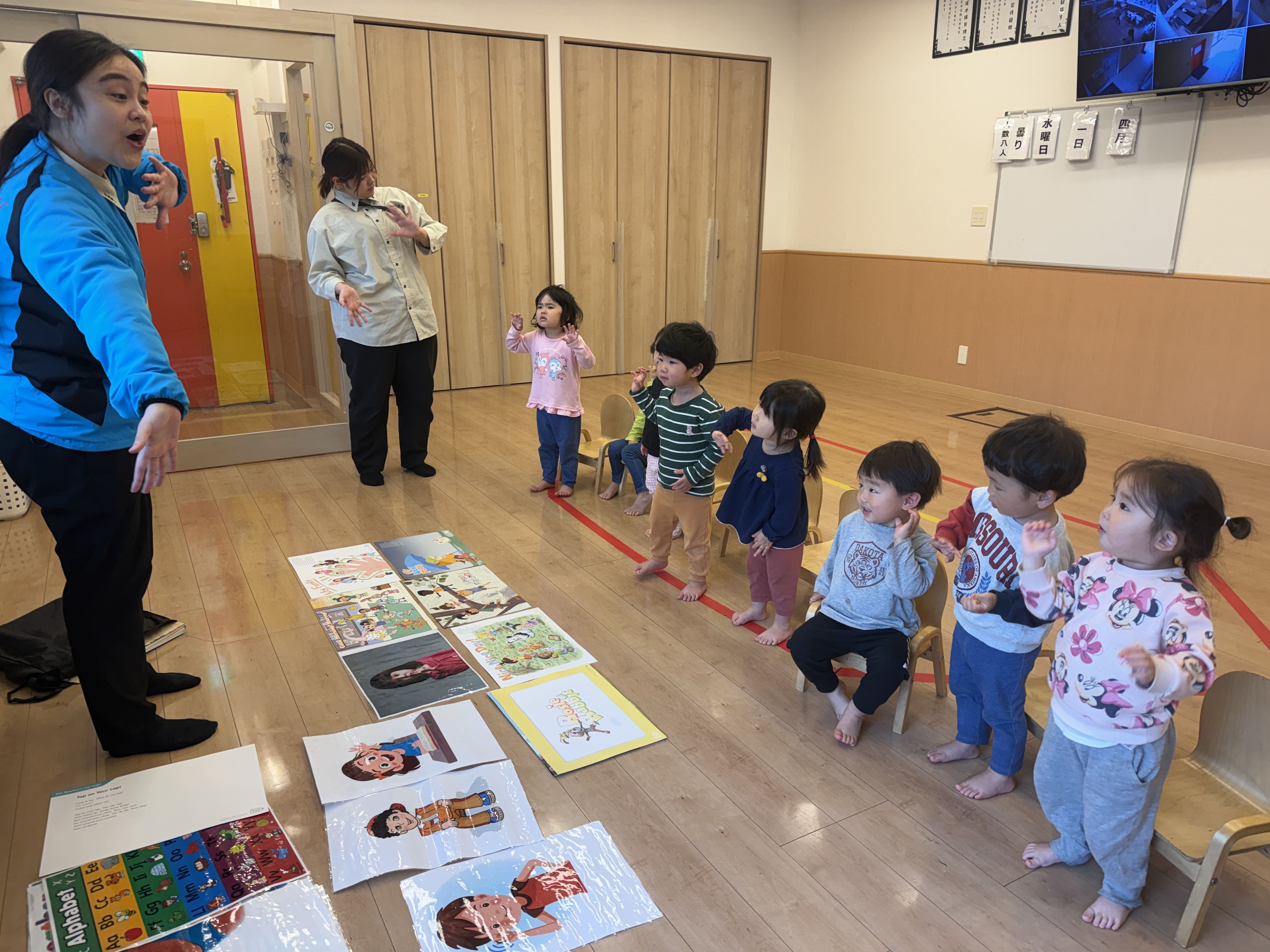 お部屋で英語遊びの時間がありました。