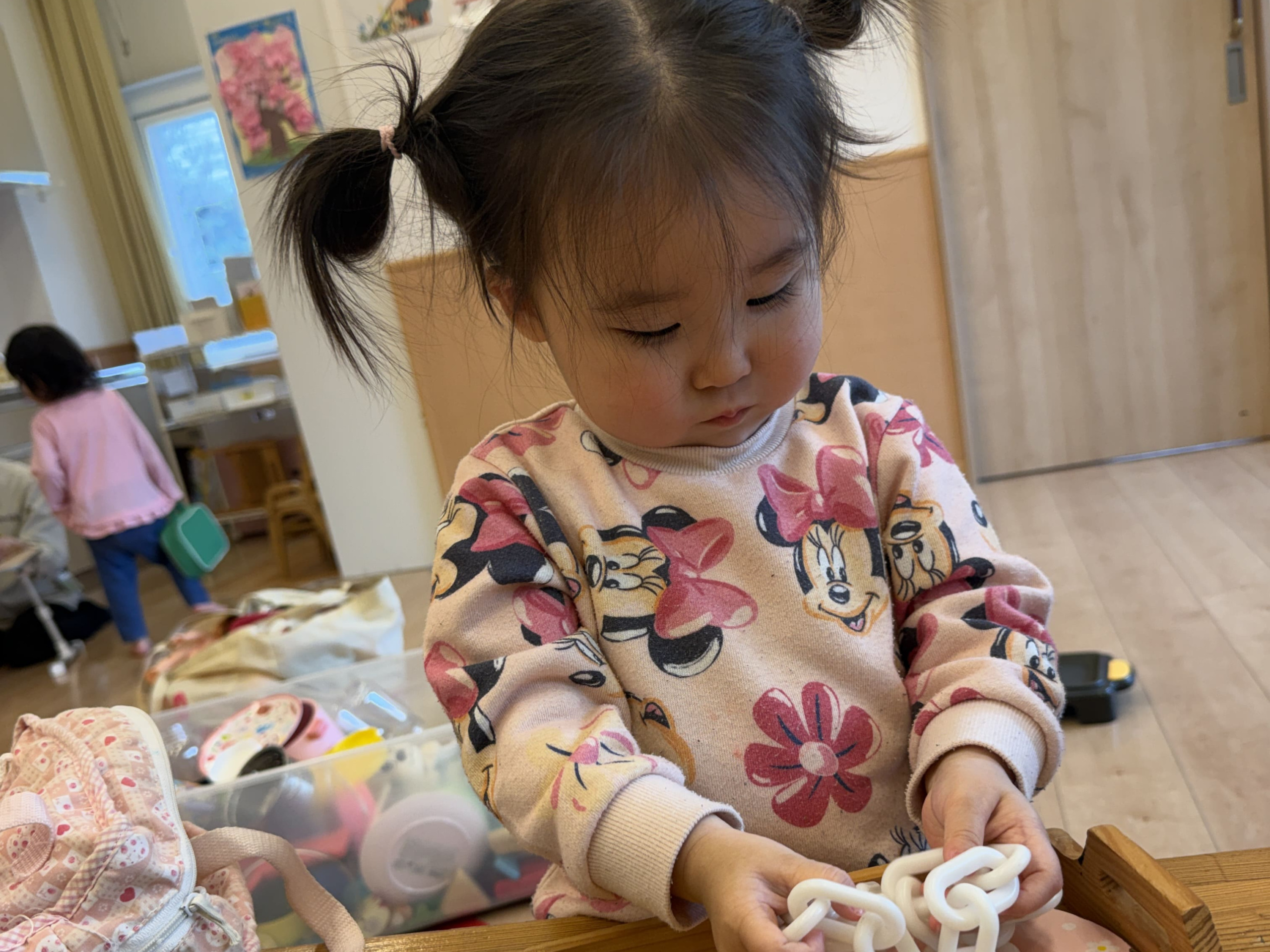 一方、虹組さん(2歳児クラス)のお友だちは、
