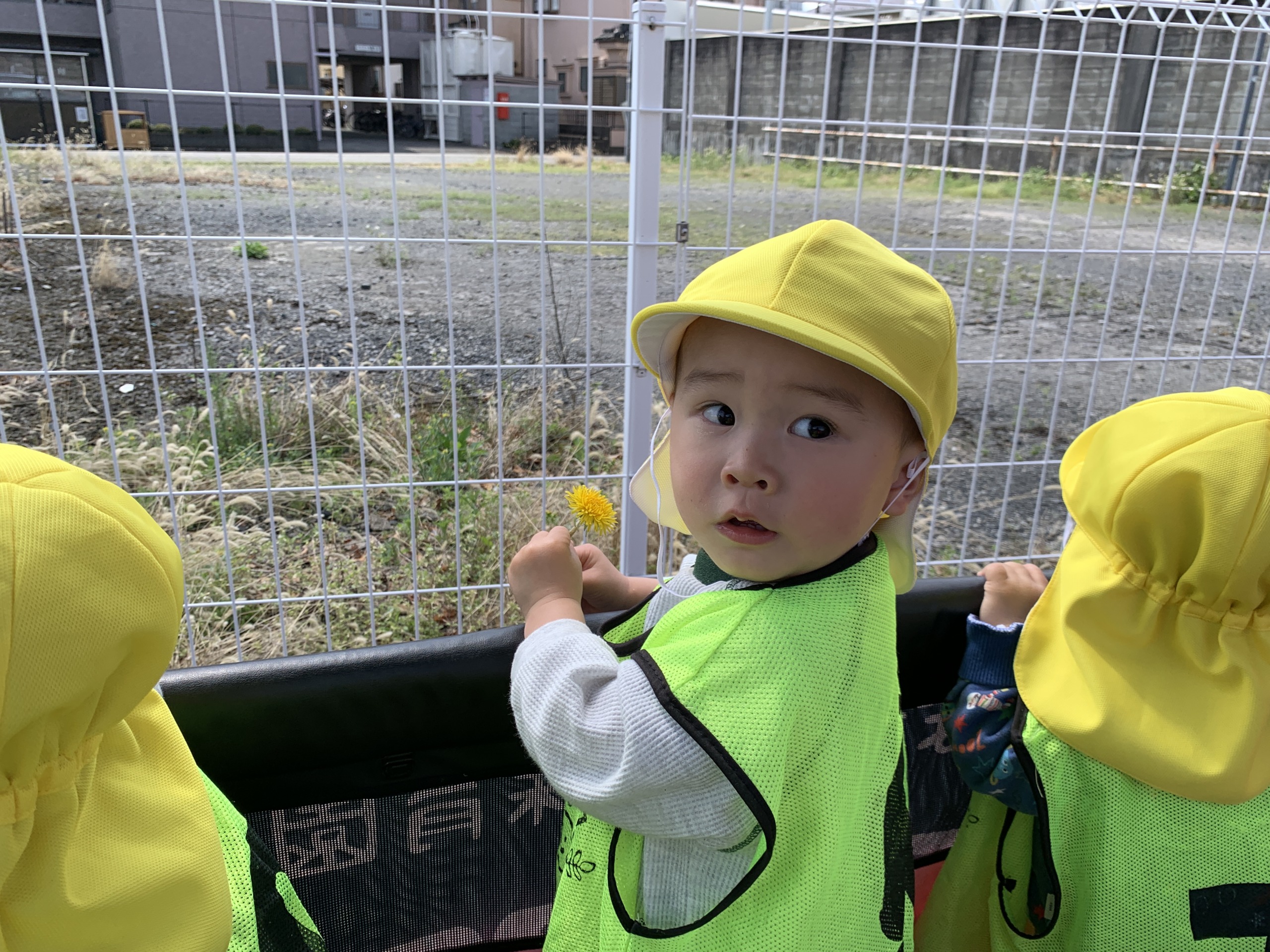 先生が「きれいだね、たんぽぽさん」と声をかけると、