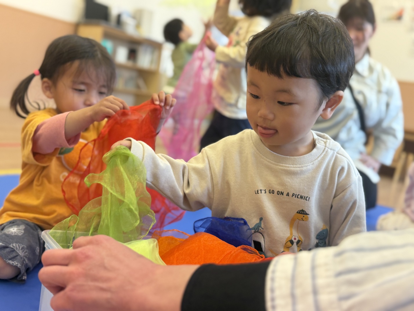 さて、虹組さん(2歳児クラス)は、
