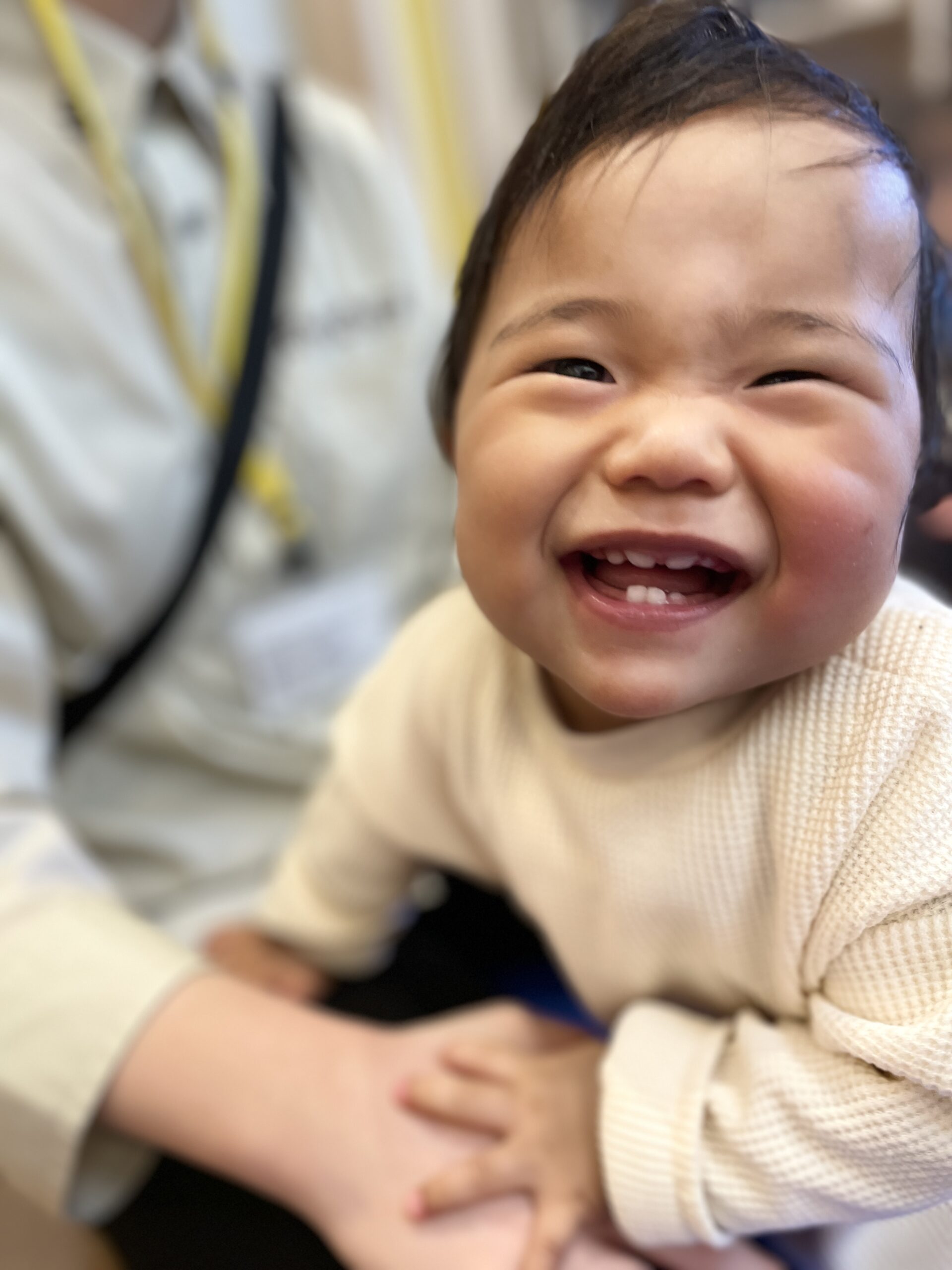 身体ほぐしとスキンシップを兼ねて、幸せなら手を叩こう♪を歌いますよ。