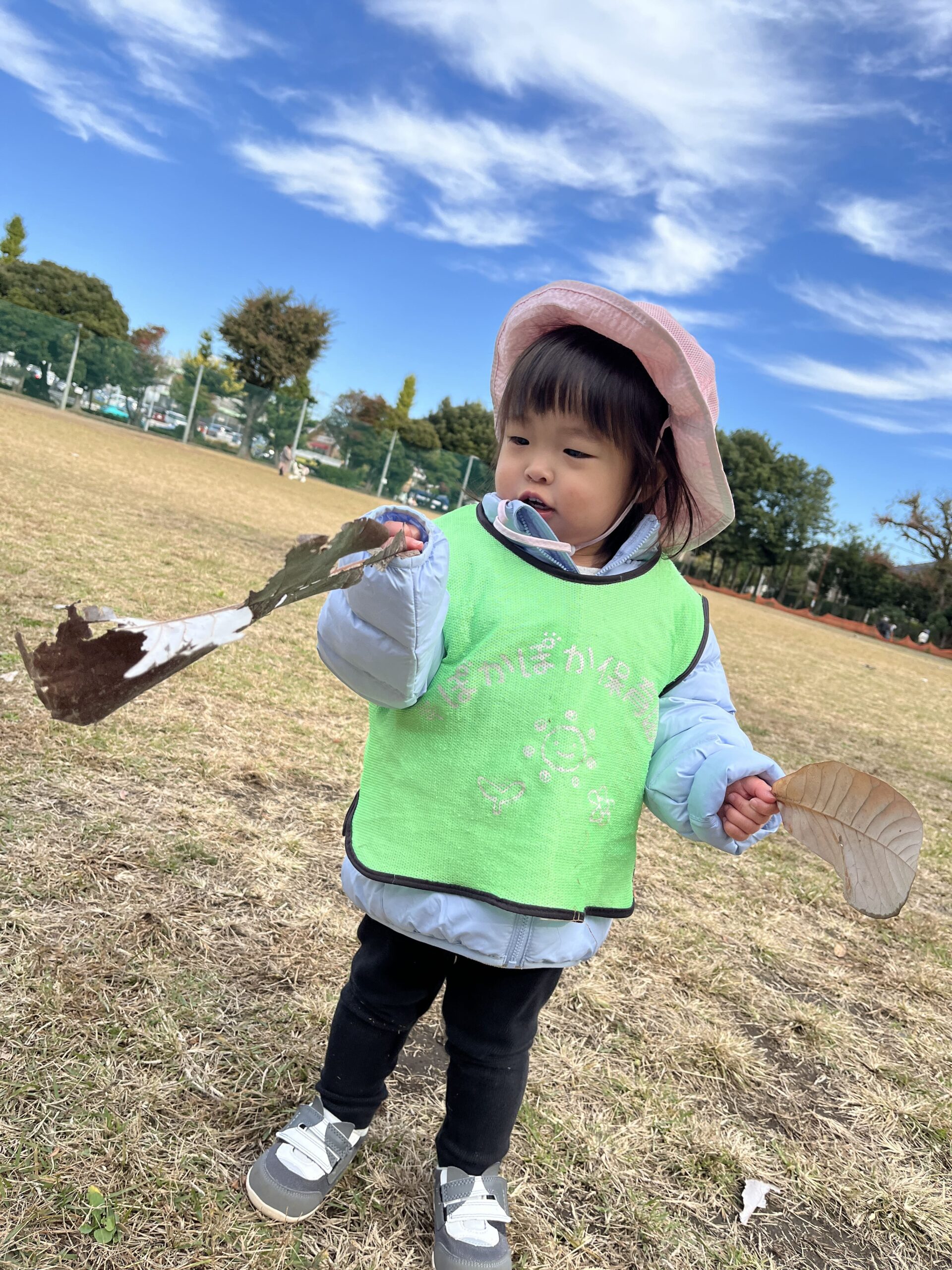 大きな落ち葉を発見!自分で見つけて拾って確かめて、とっても素敵な時間となりました。