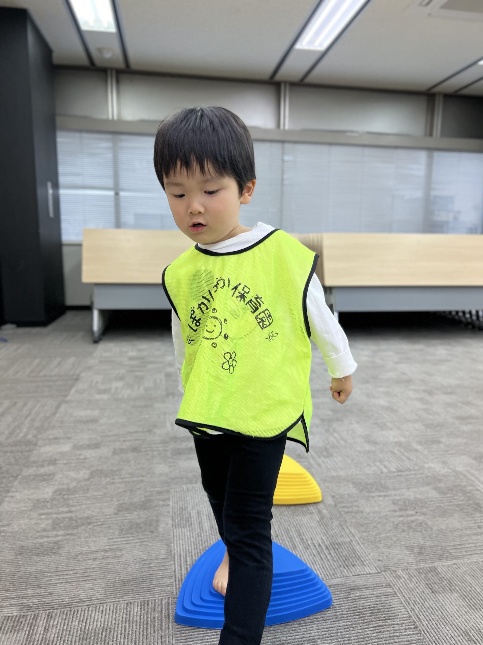先生が「バランス名人だね!」と声をかけると、「うん!」と自信たっぷりの表情を見せてくれました。