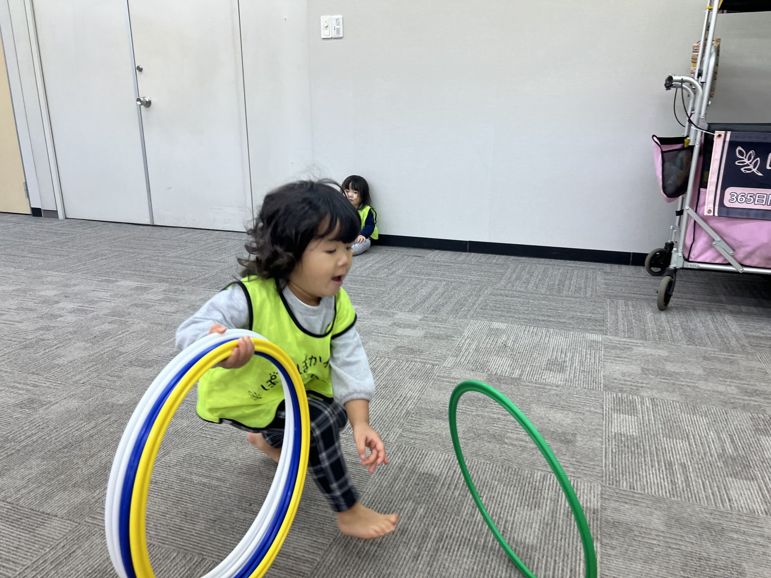フープを帽子のように頭に乗せて「見て見て!」と見せに来てくれる子もいました。