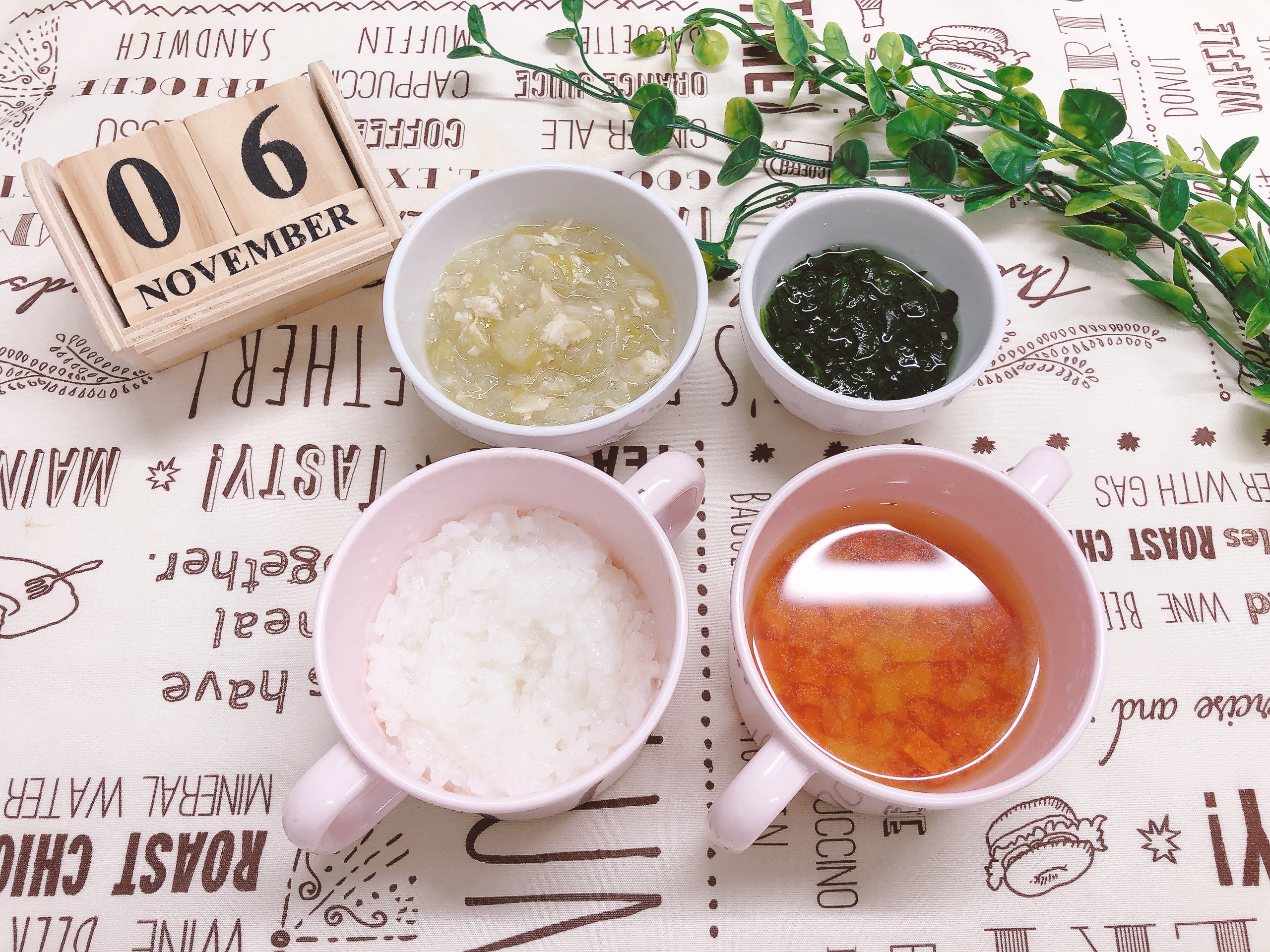 にんじん・えのき・ほうれん草をコンソメでやさしく煮込み、ほんのり塩味をきかせたスープ。野菜の甘みが溶け込み、子どもたちの笑顔が広がりました。