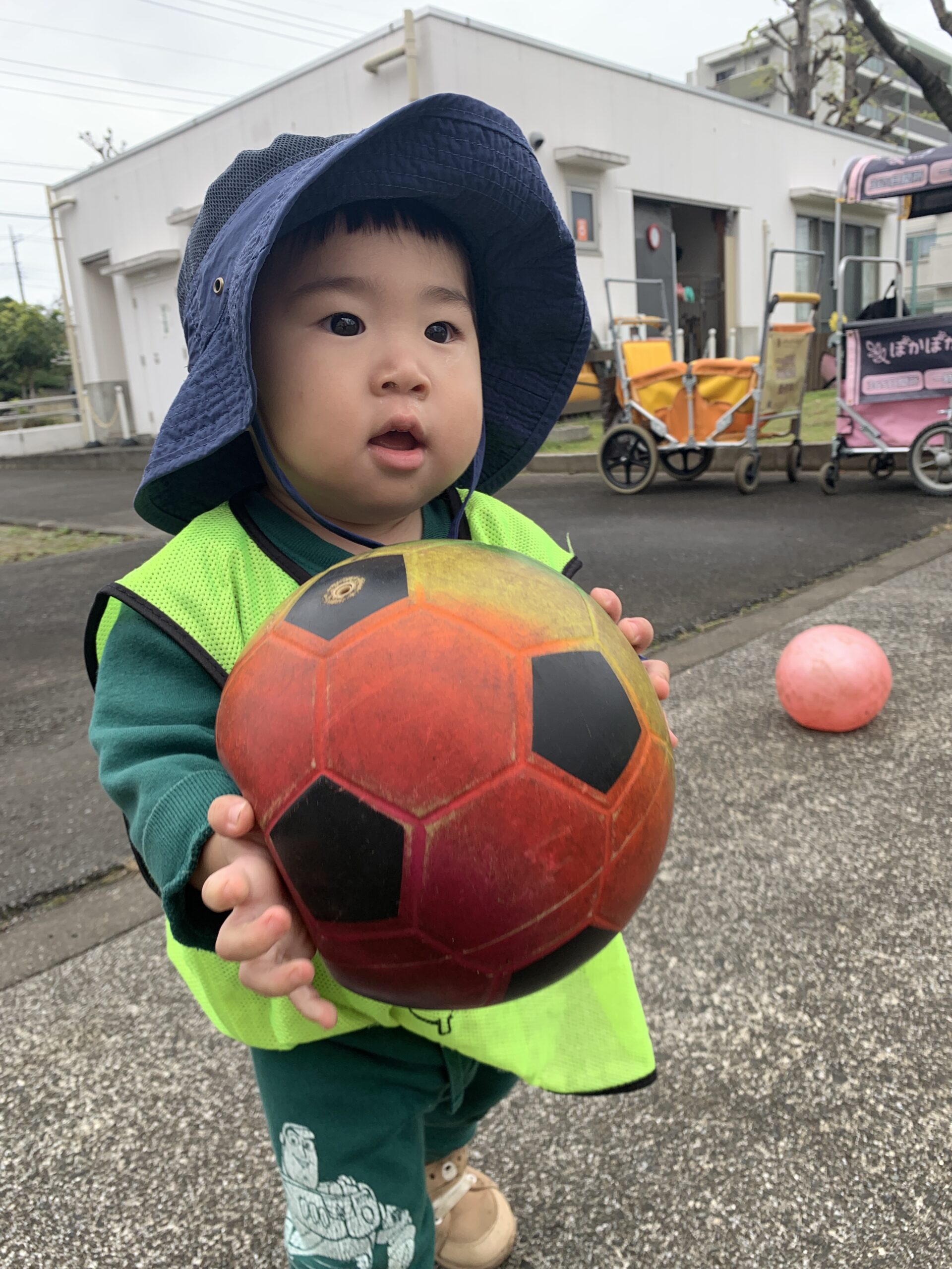 2歳さんが「えいっ!」とボールを投げると、