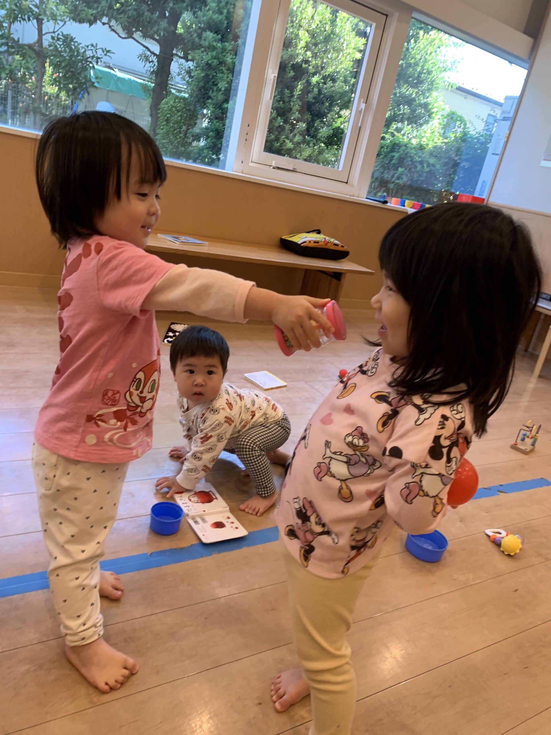 登園してくれた0歳、1歳、2歳のお友だちが合同で、