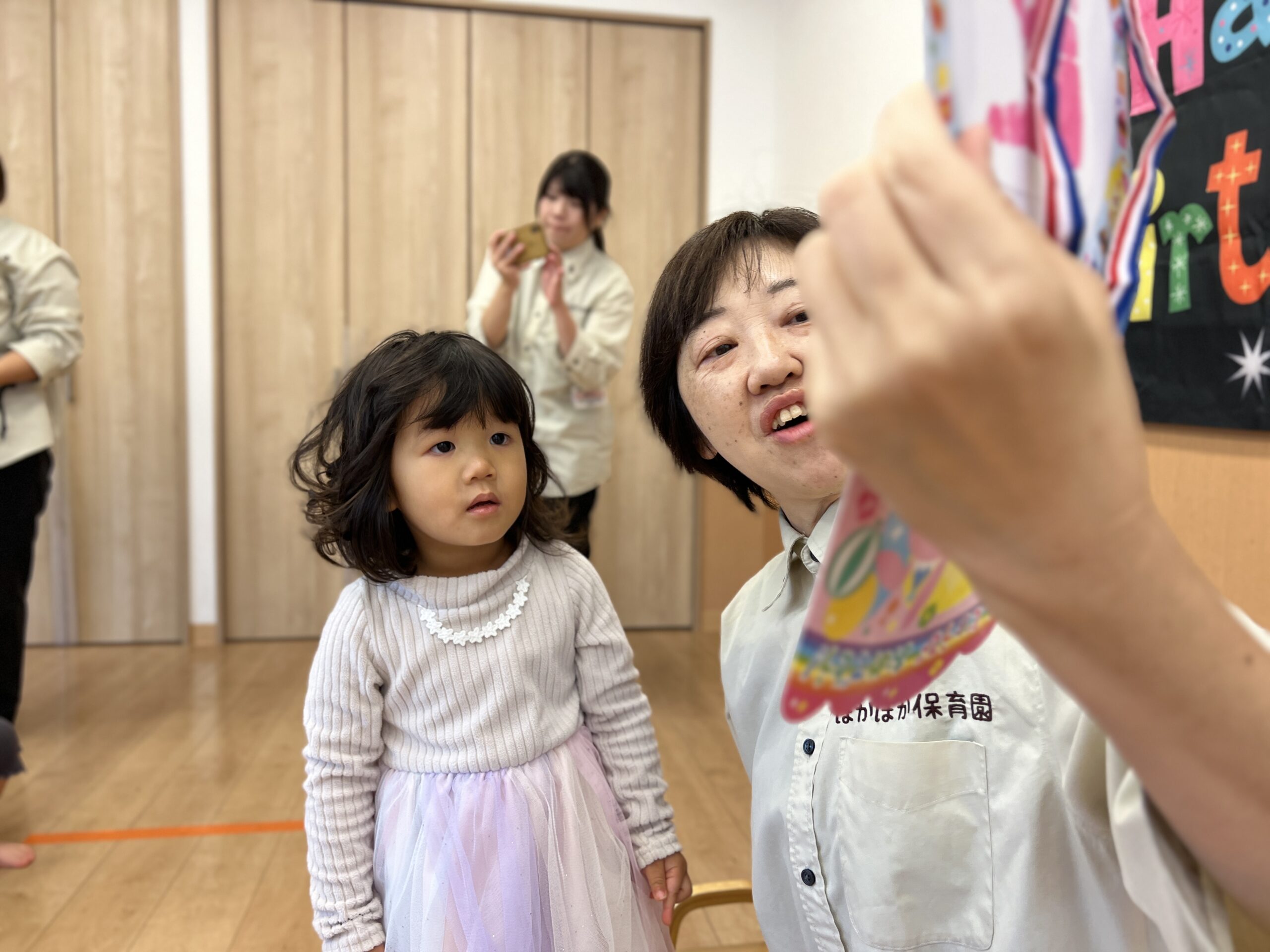 先生からは、お誕生日を迎えた子どもへのメッセージカードが読み上げられました。