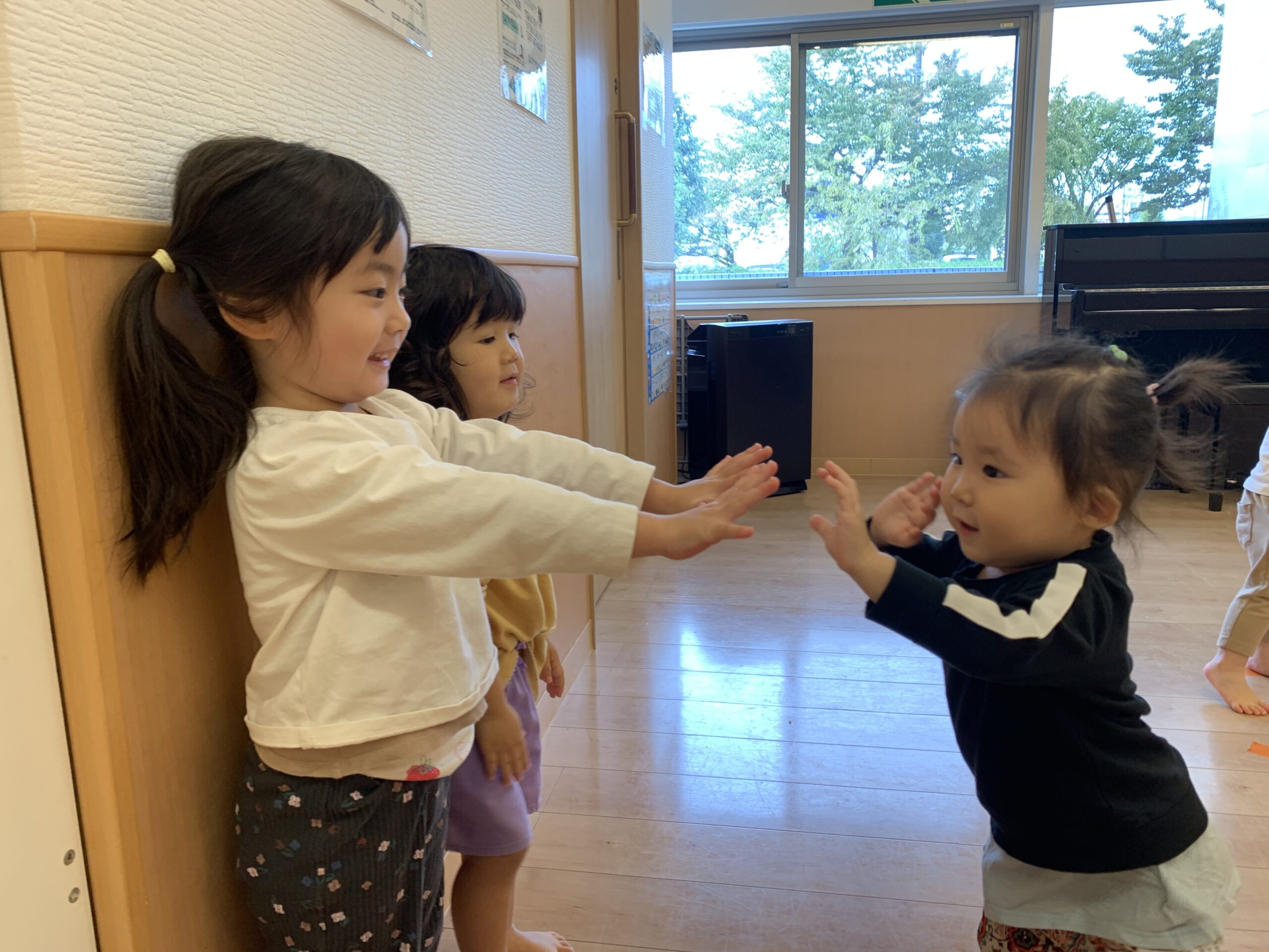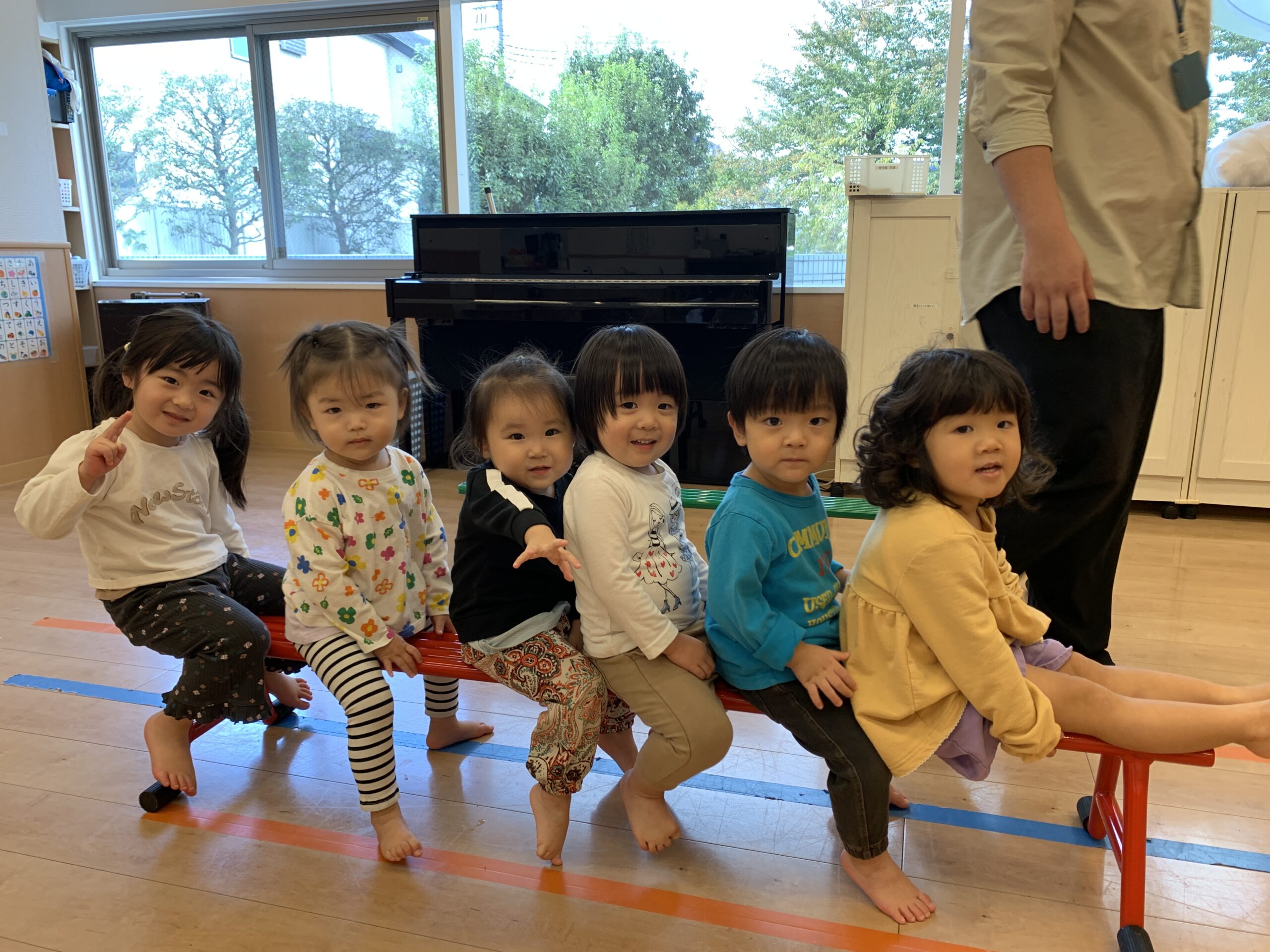 その頃、虹組さん(2歳児さん)は、保育室で安田式の運動遊びを行い、身体を動かしました。