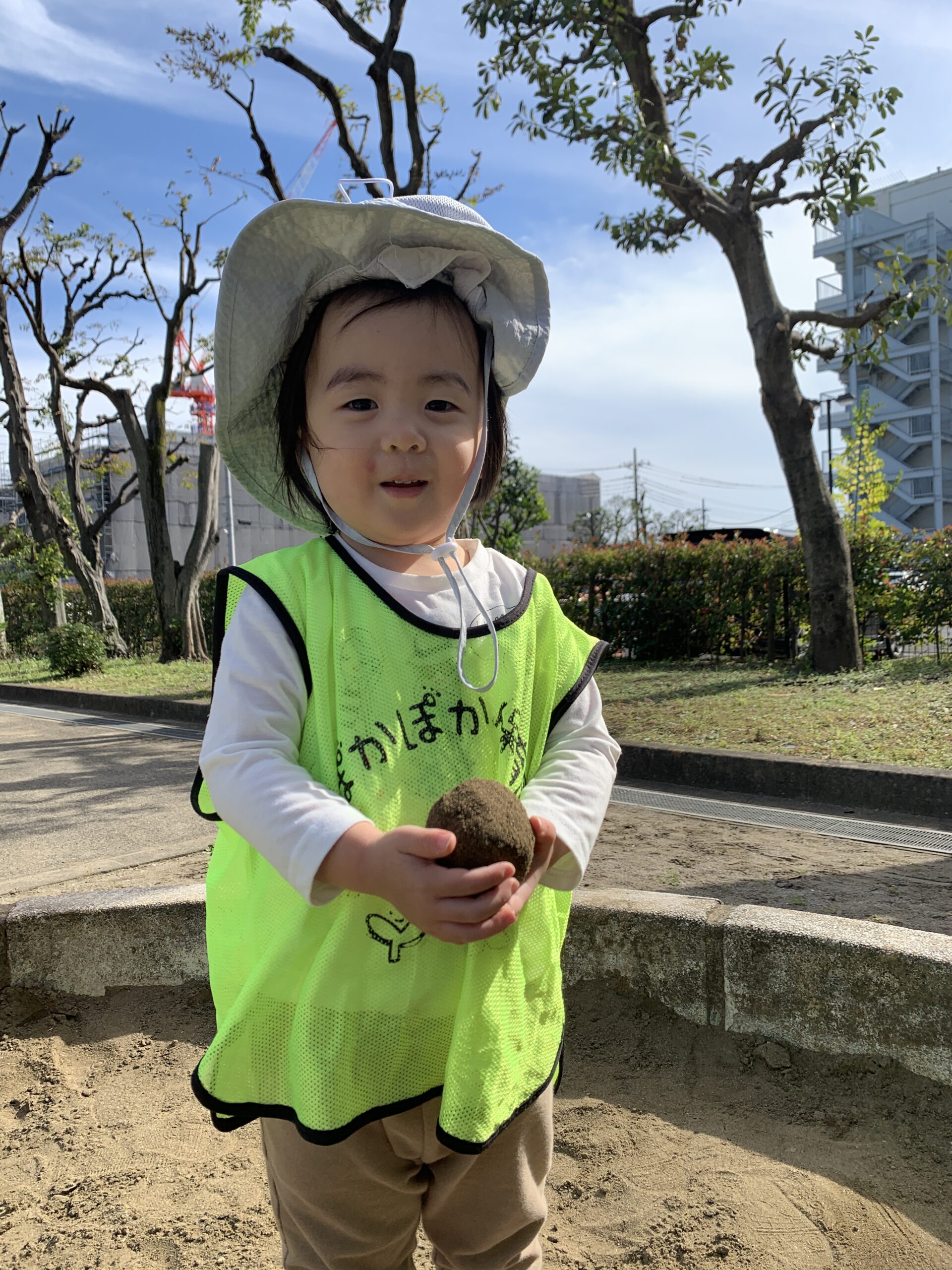 「せんせい、おだんごできたよ!」と、きれいに丸まった泥団子を嬉しそうに見せてくれました。