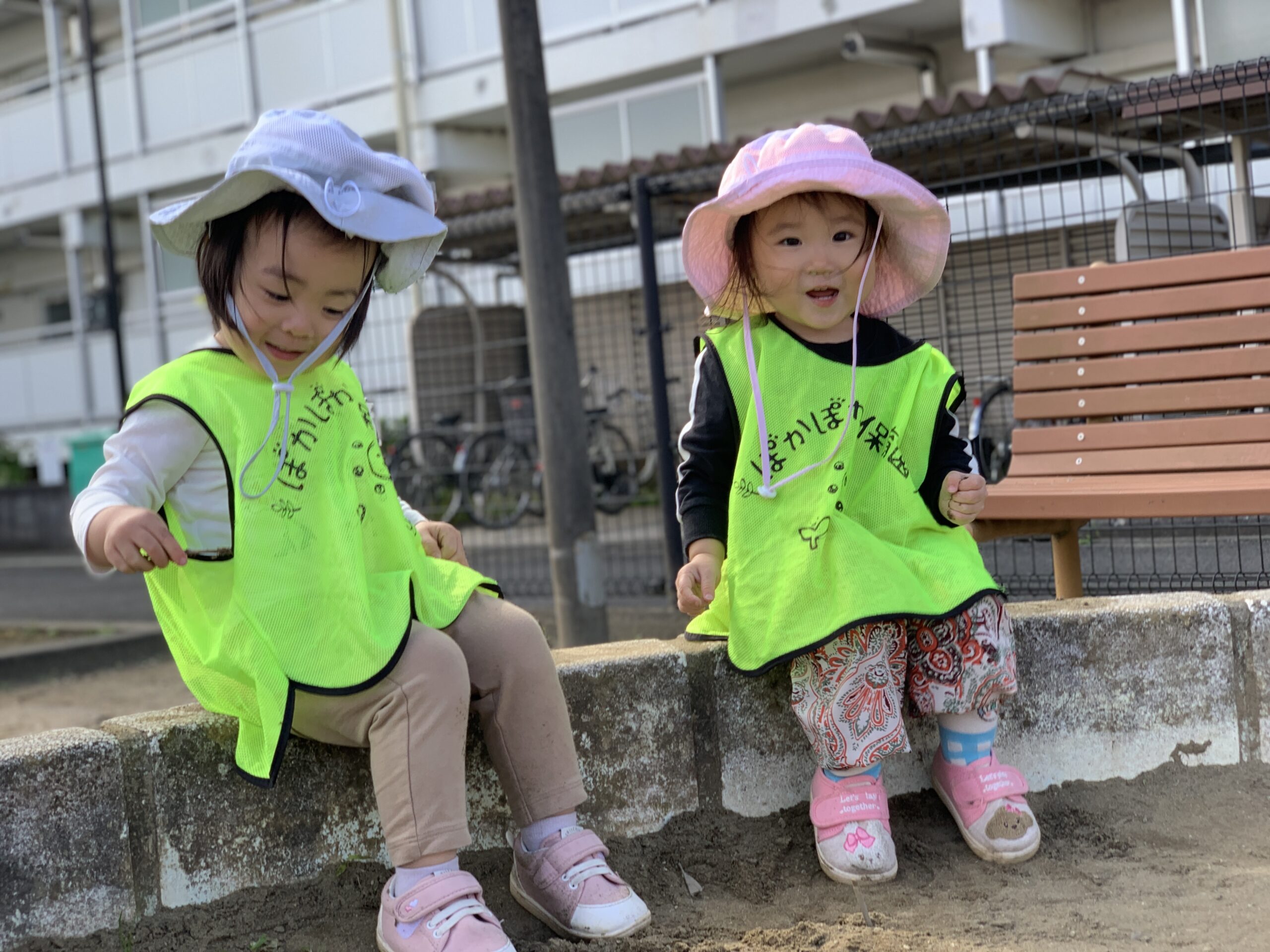 午前中、青空組さん(0、1歳児さん)のお友だちは、みんなで公園に行って遊びました。
