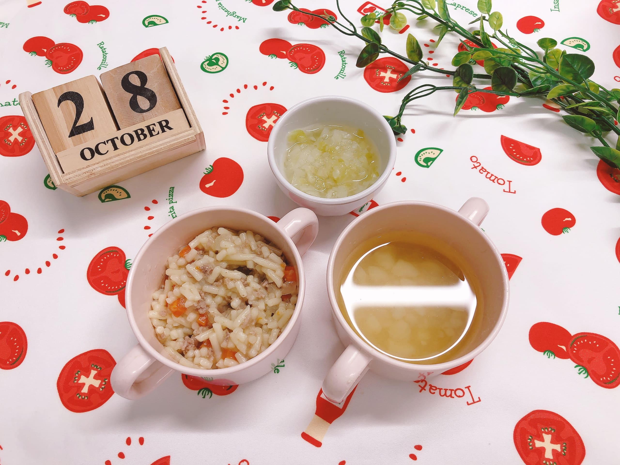 にんじん・たまねぎはみじん切りにしてしっかりと炒め、野菜の甘味をじっくり引き出した特製ソースです。トマトの酸味を穏やかにまとめ、豚ひき肉と合わせてじっくり煮込みました。子どもたちはフォークを上手に使い、くるくるとスパゲティを巻き取りながら「モグモグおいしい!」と笑顔いっぱいでした。