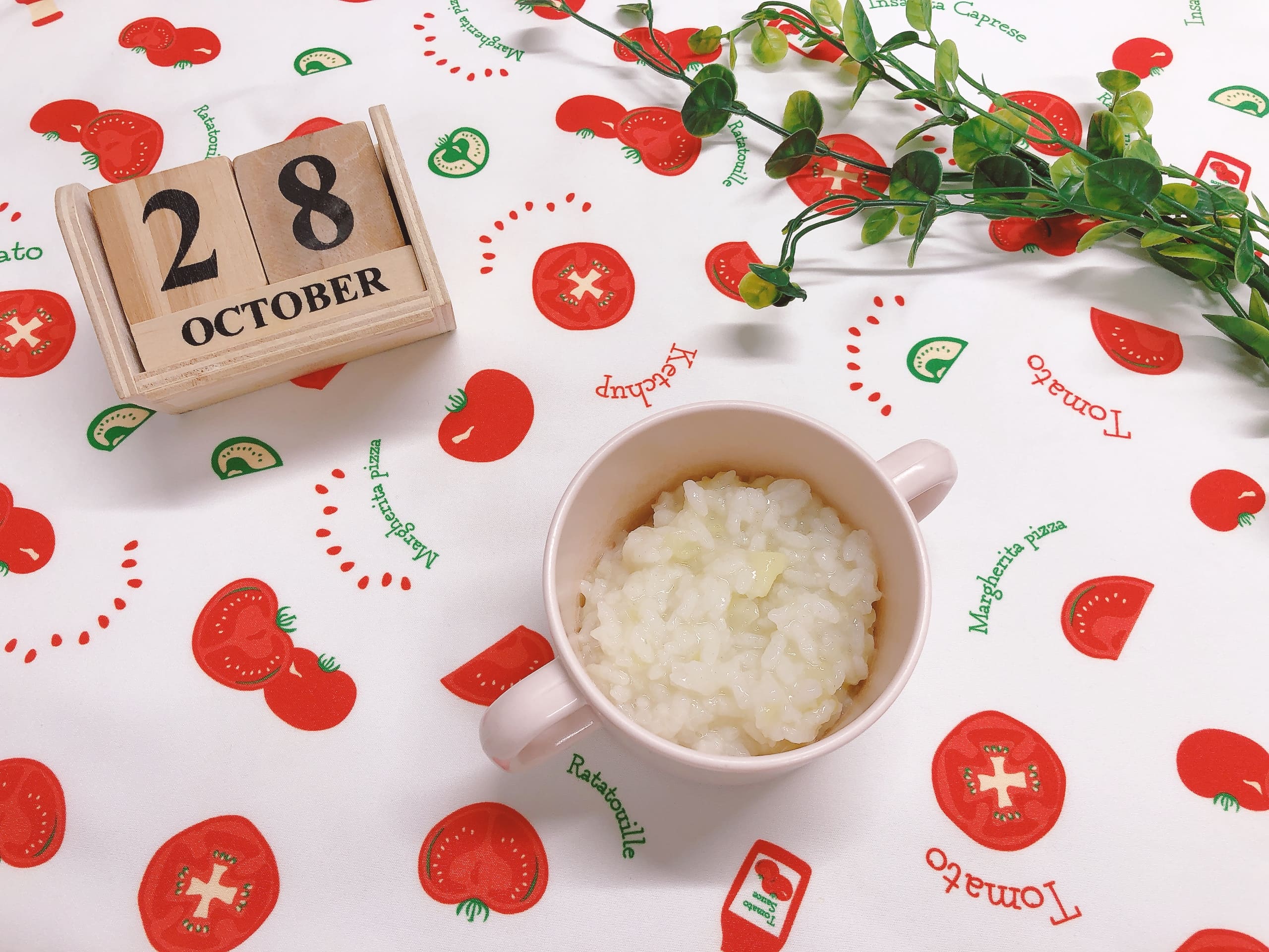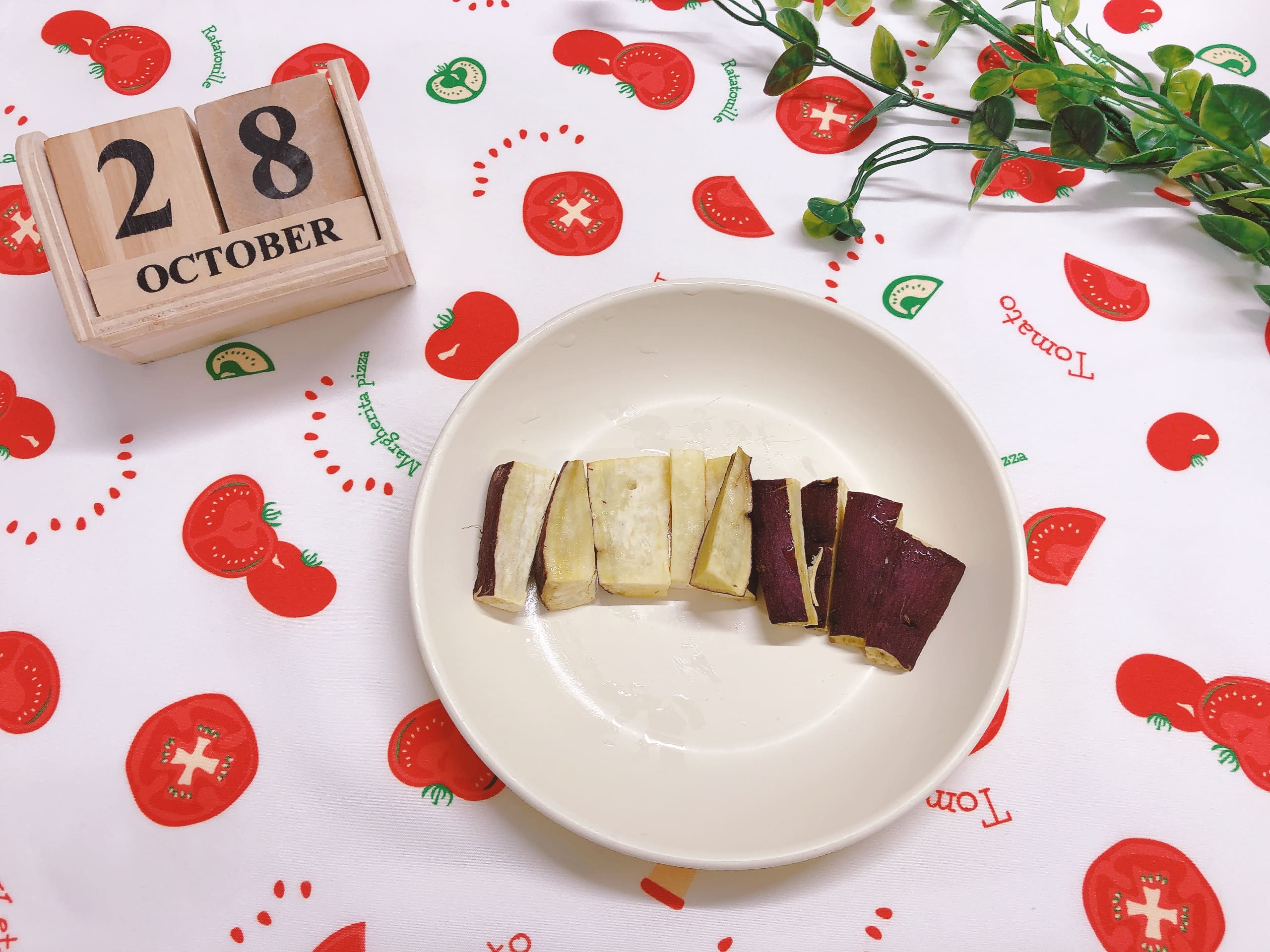 誤飲防止のために一口大の煮りんごに。冷めても硬くならないよう短時間でじっくり火を通しました。甘酸っぱく仕上がったりんごは、デザートにぴったり。