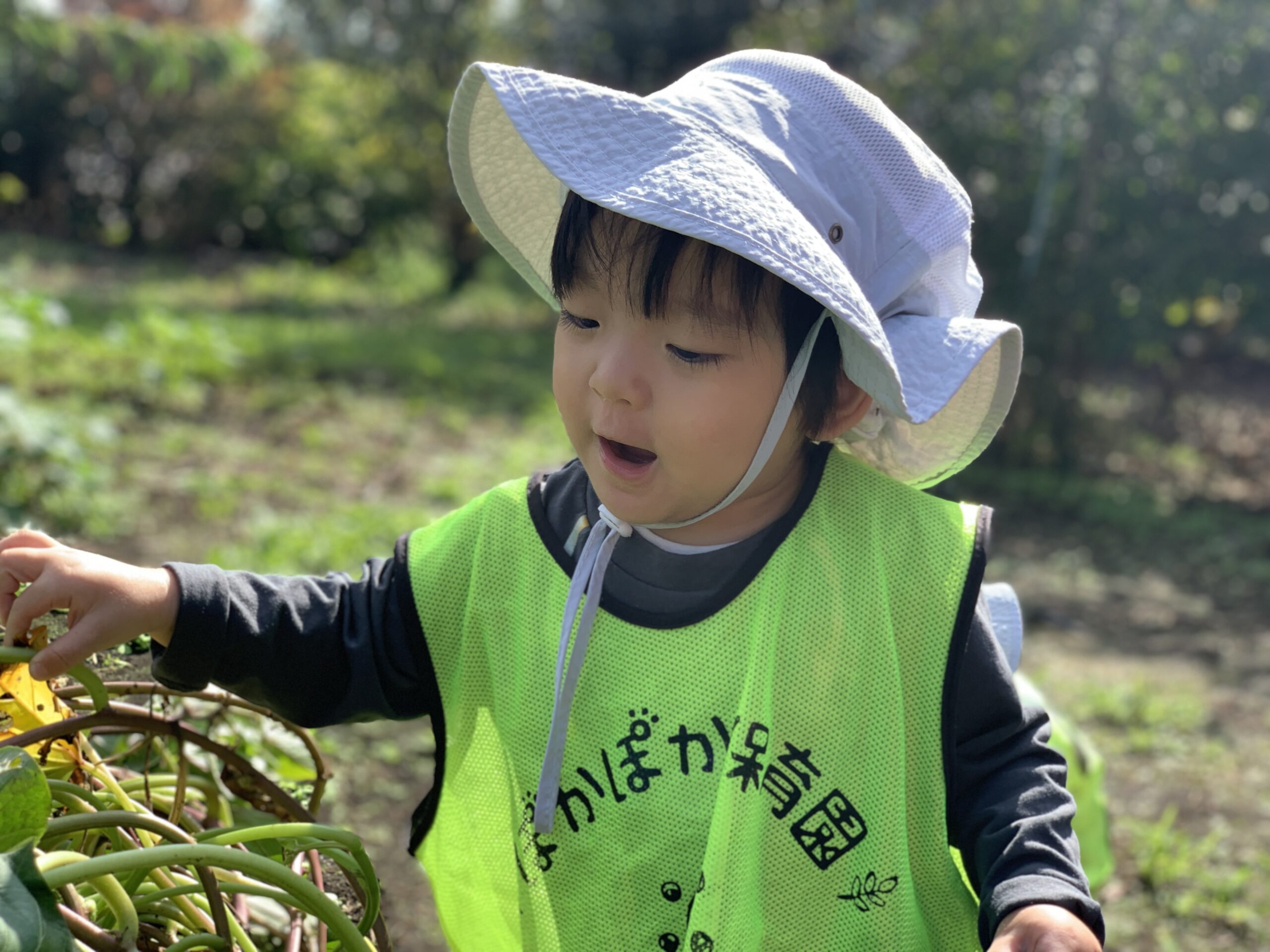ダンスの後は、みんなで畑へお散歩に行き、さつまいもの様子を見に行きました。