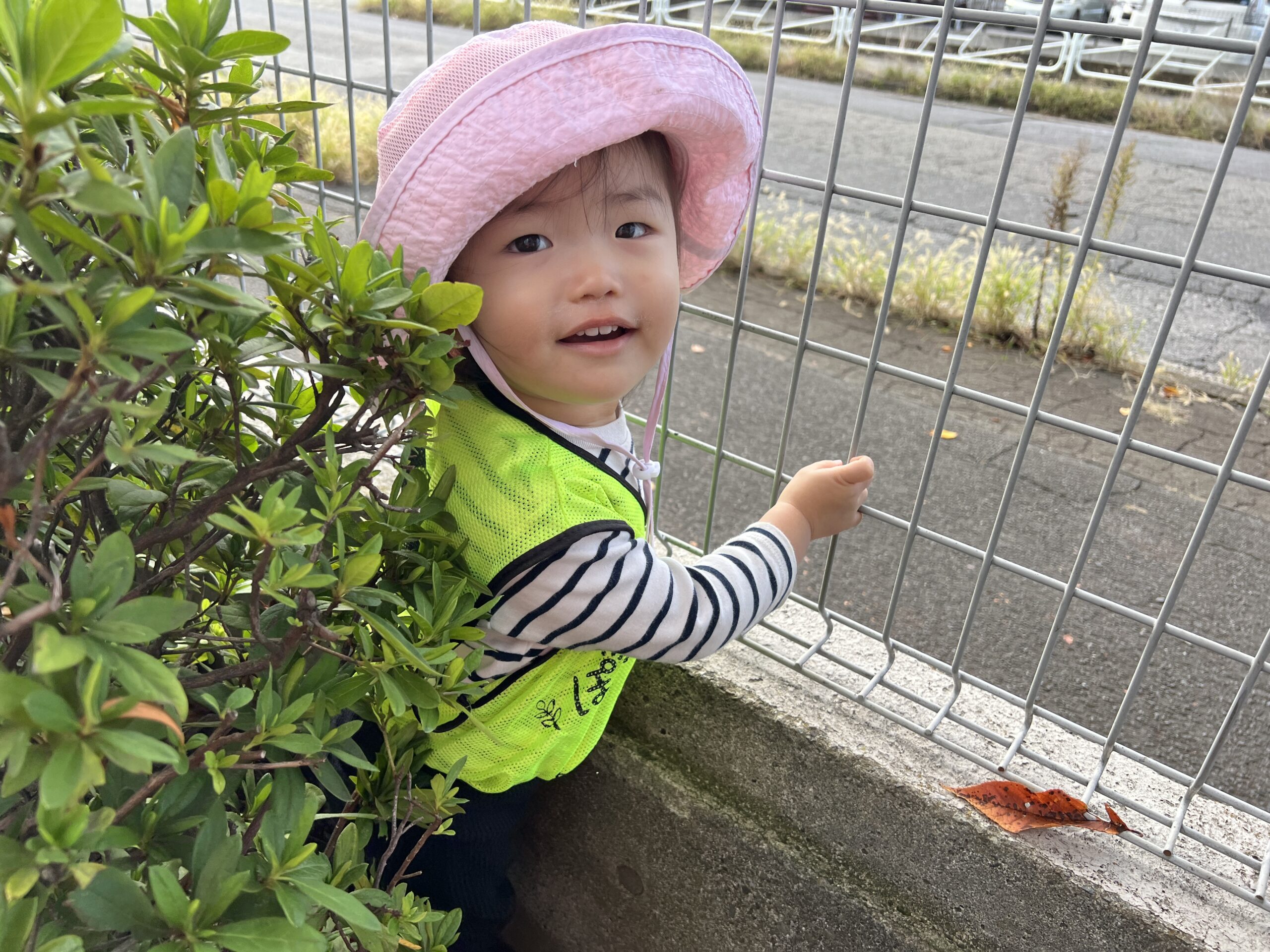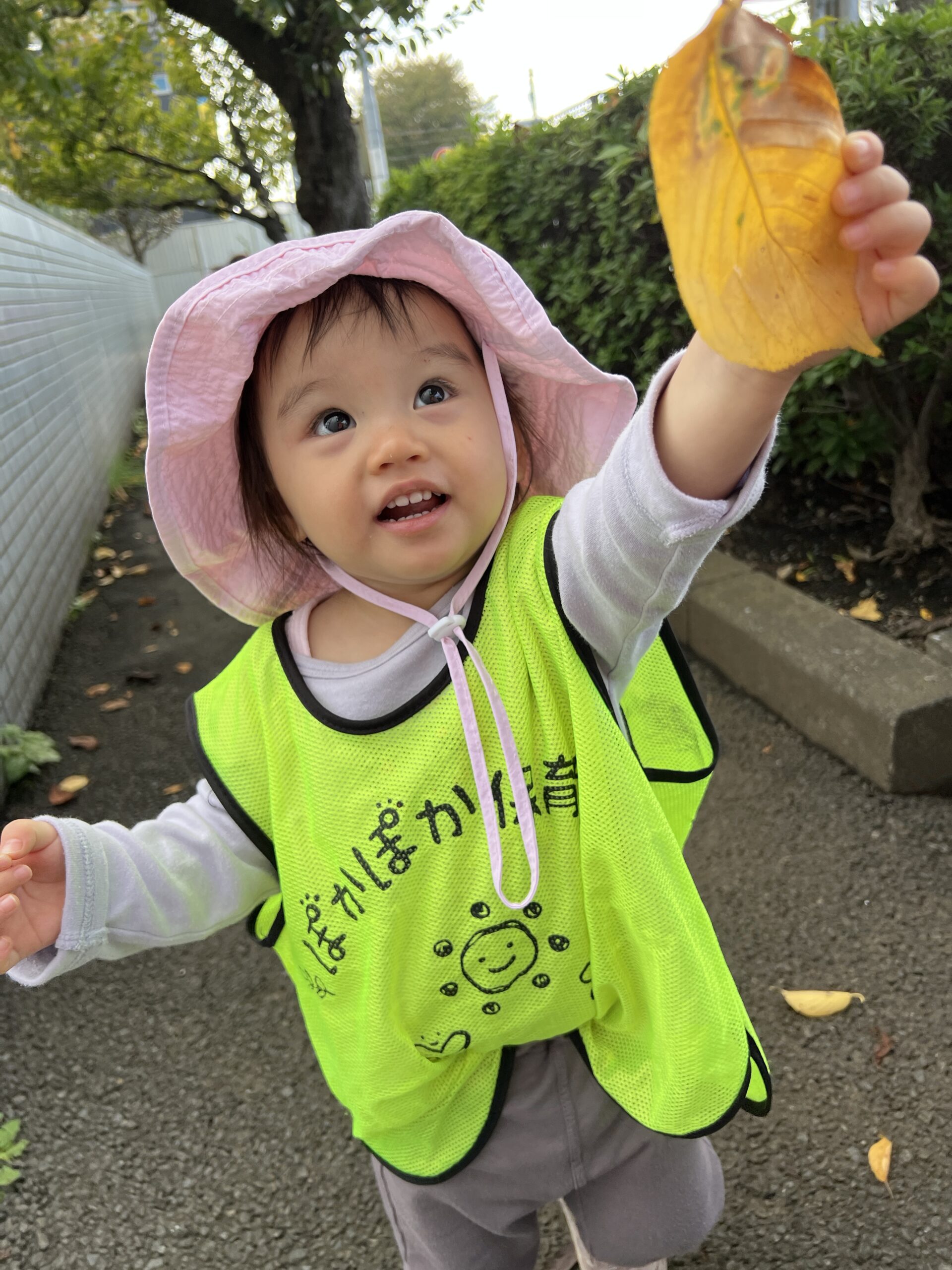 小さな手で落ち葉を拾い集めたり、ひらひらと舞わせたり、