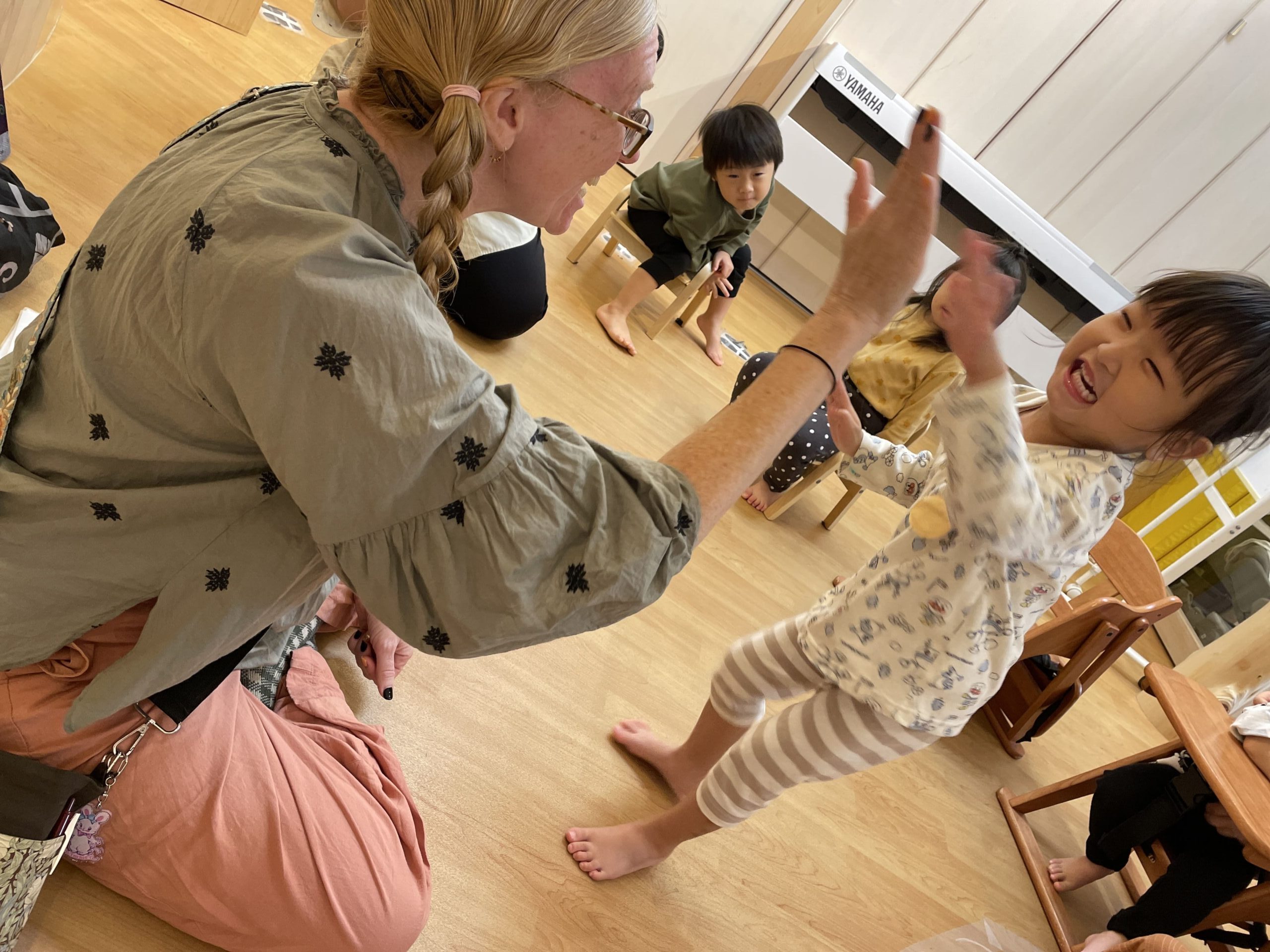 先生に「Great! !」とたくさん褒めてもらい「ぱちん!」と嬉しいハイタッチも出来ました♡