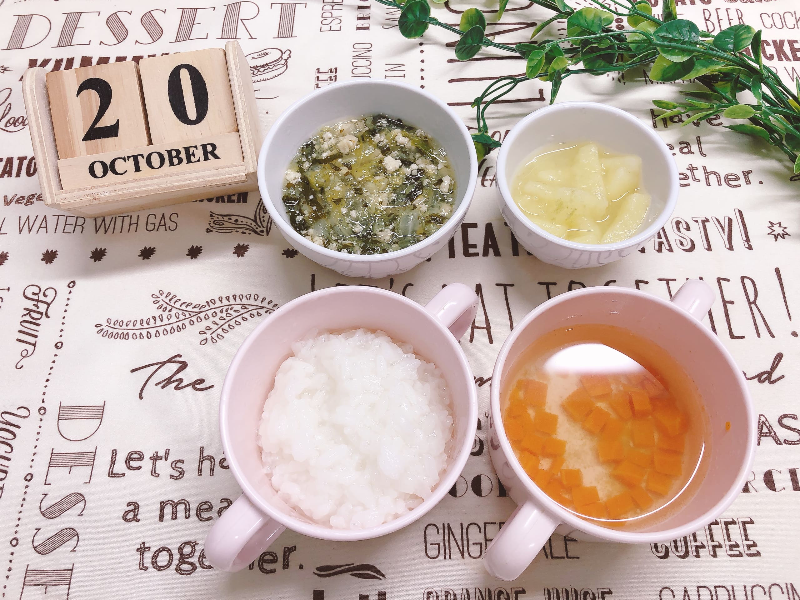 給食の最後はさっぱりとした青りんご味のゼリー。果汁をたっぷり使い、プルプルした食感が楽しいデザートです。自分でスプーンを使ってすくうことで、手先の巧緻性も自然に育まれます。