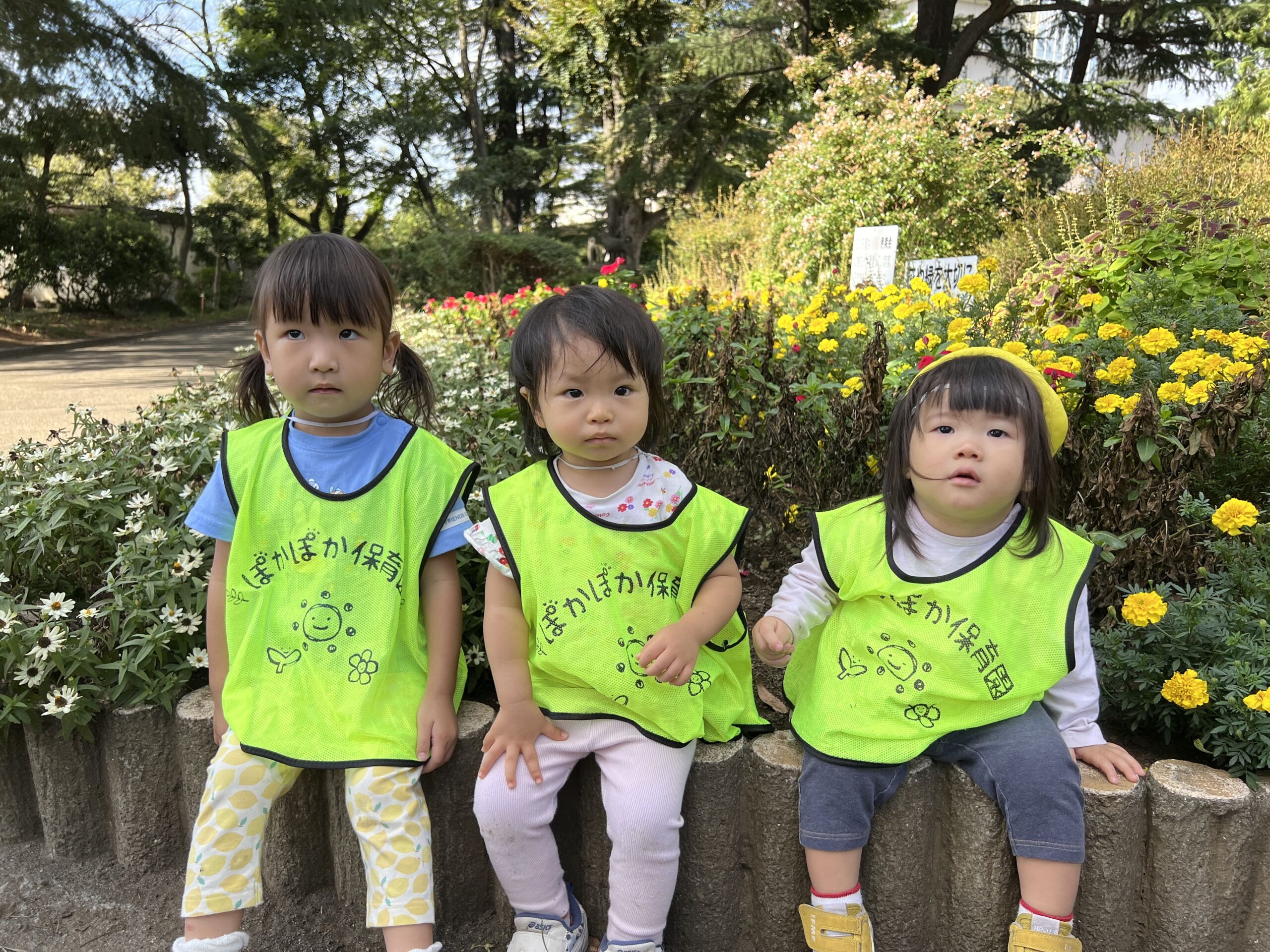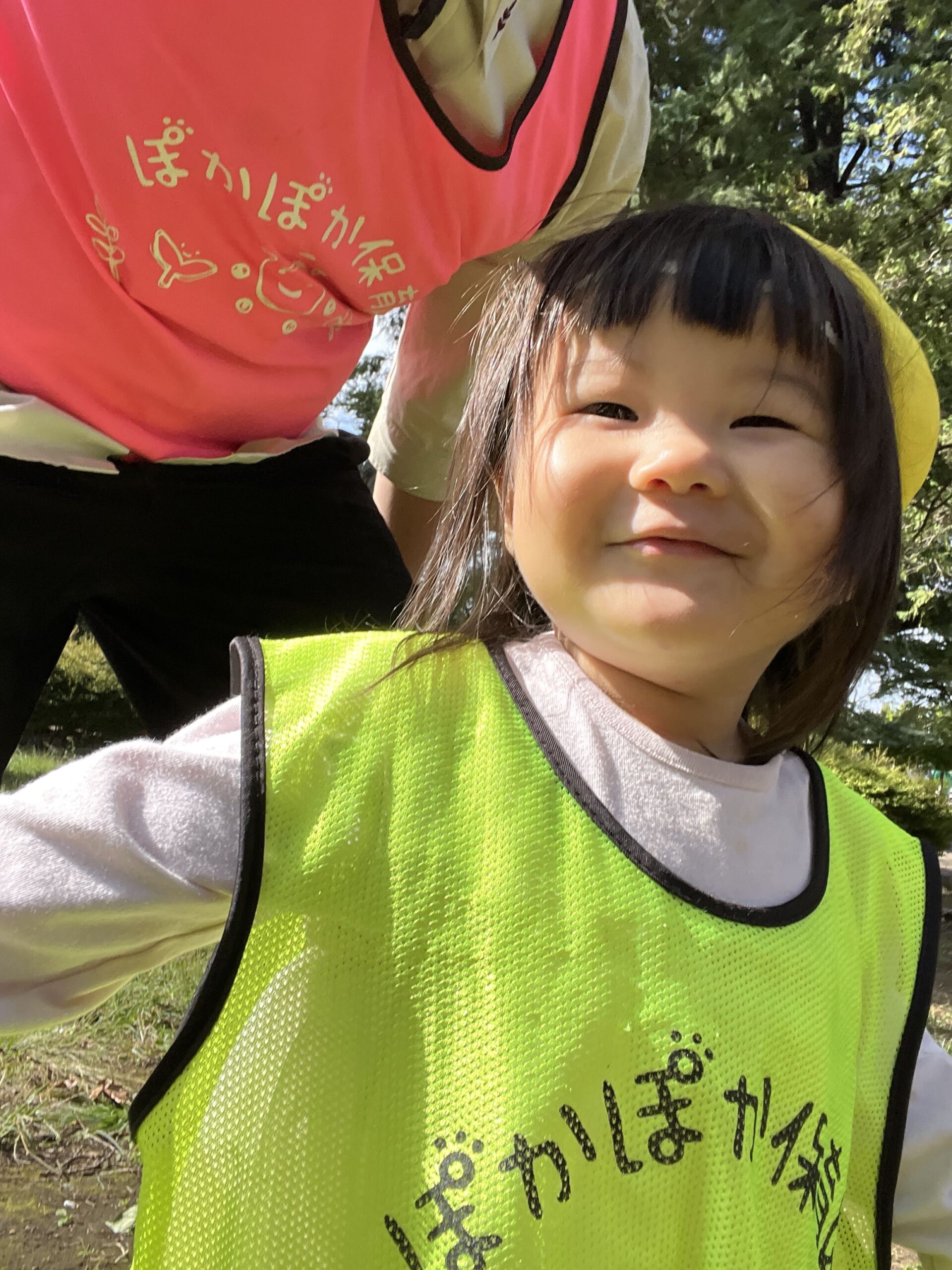 今日は晴天。公園で0歳さん・1歳さん・2歳さんが探検隊になって出発。