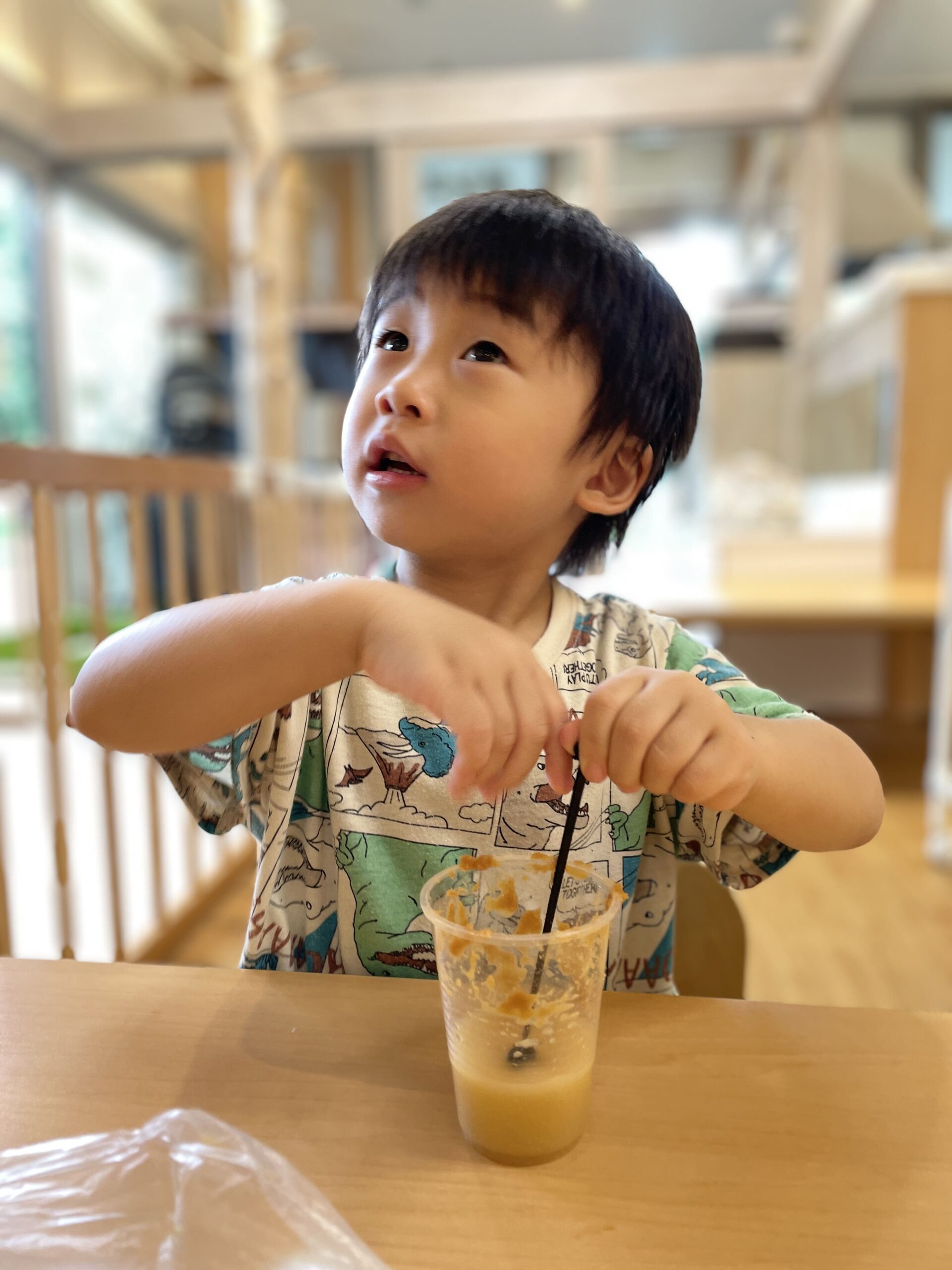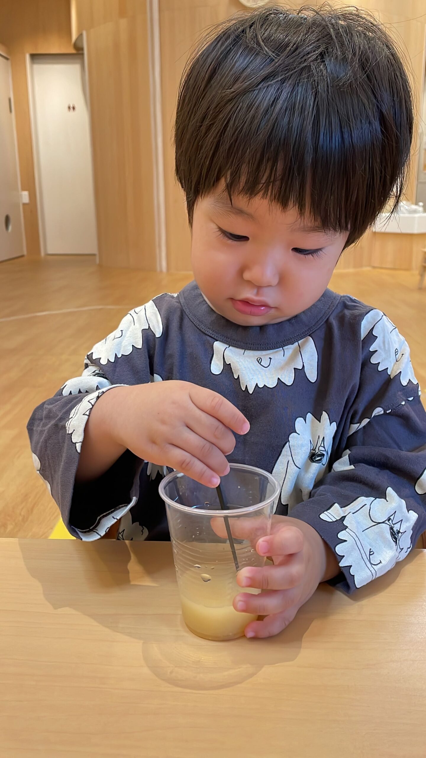 「マドラーで混ぜてみよう」に「まぜまぜ!」と元気な声。
