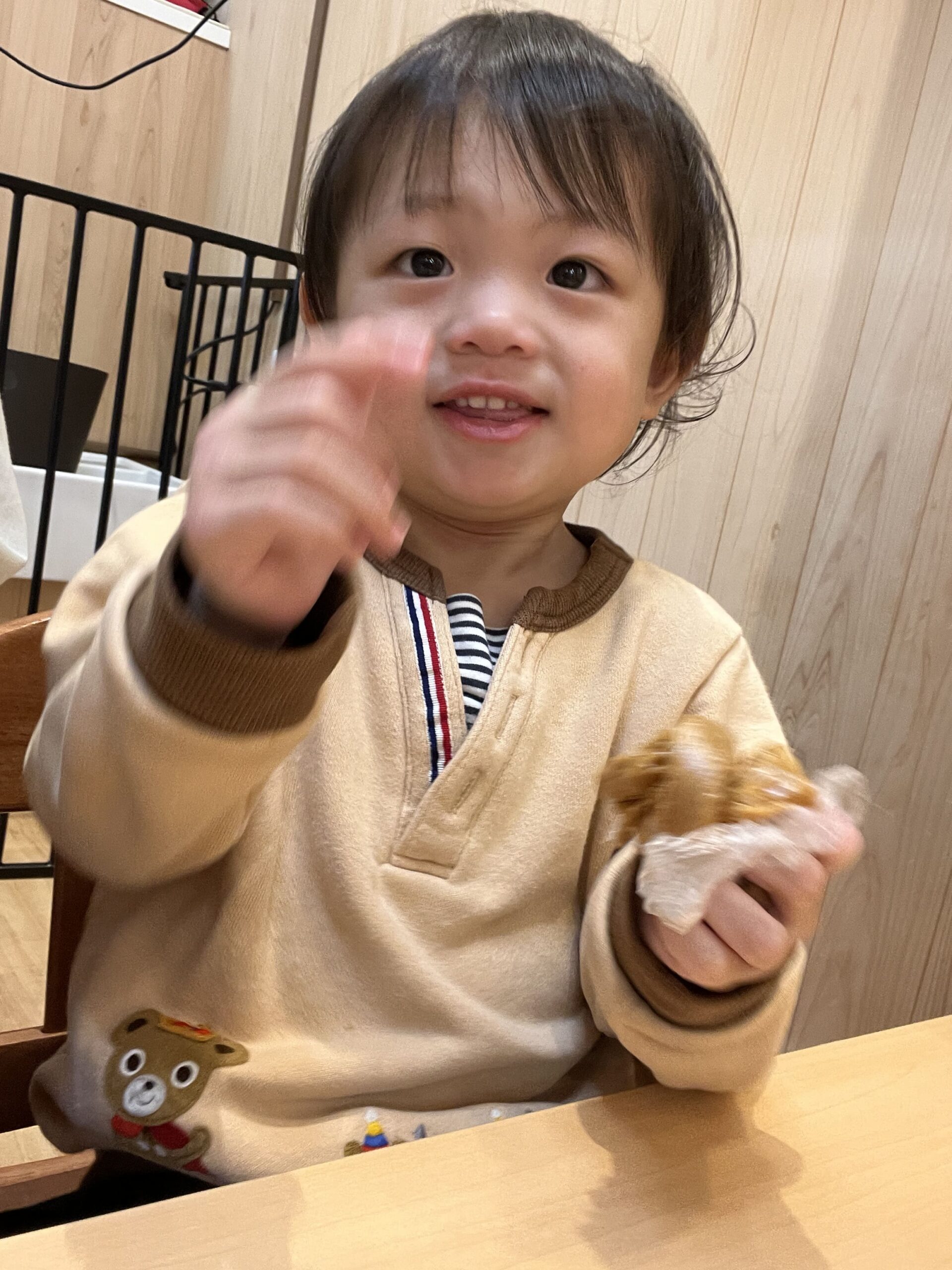 「いってきまーす!」と2歳さん、出口で「やっほー!」と笑顔が弾けます。