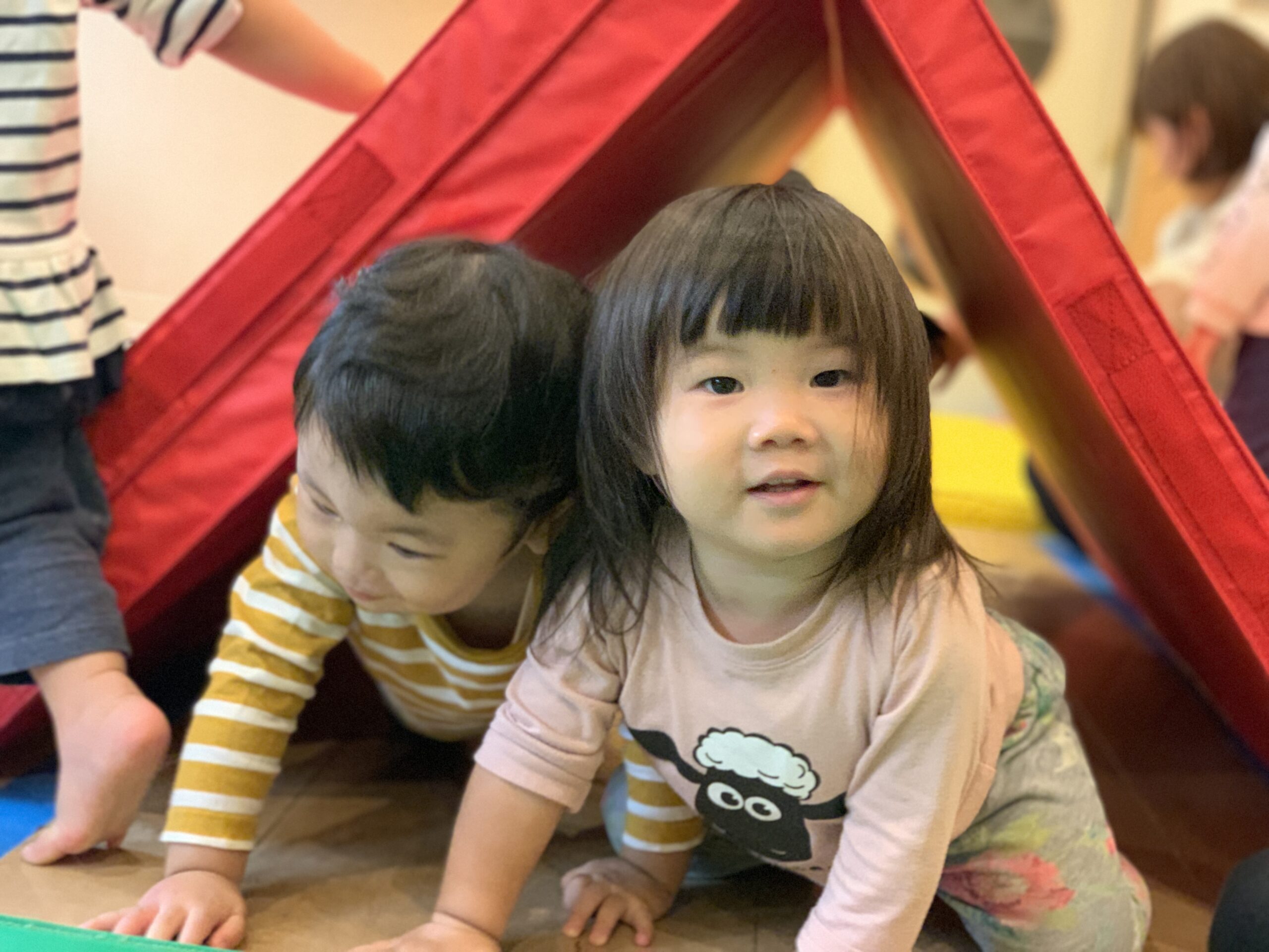 マットで作ったトンネルや、柔らかいお山を目の前にすると、みんな大喜び!